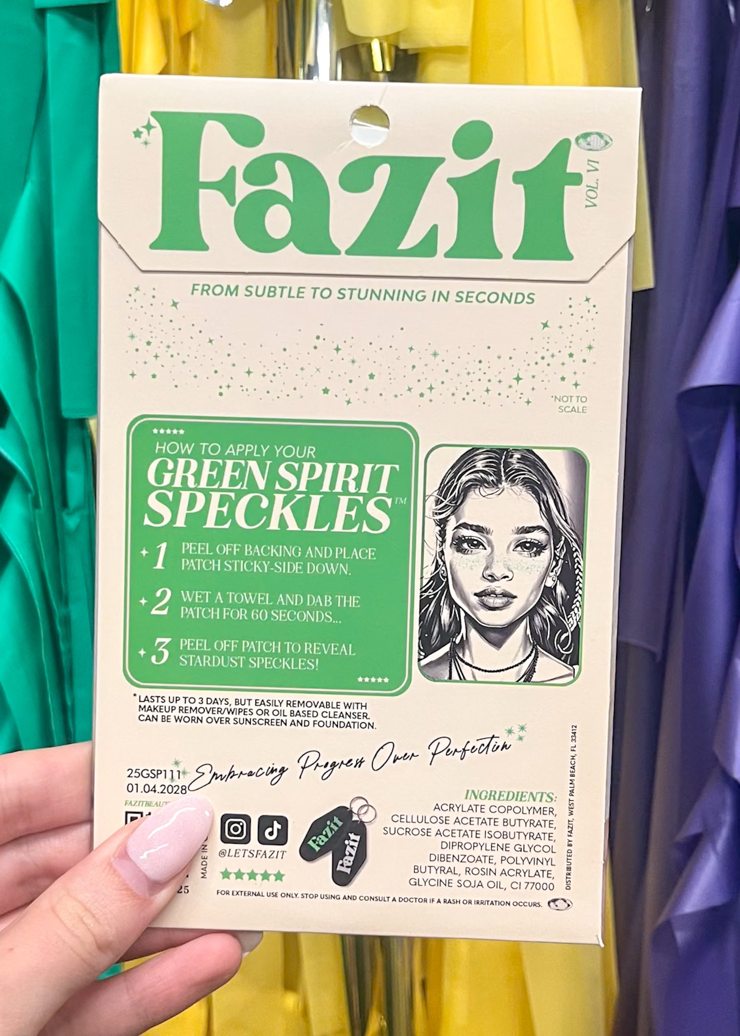 Each patch is adorned with shimmering, green speckles to highlight your beauty like never before.