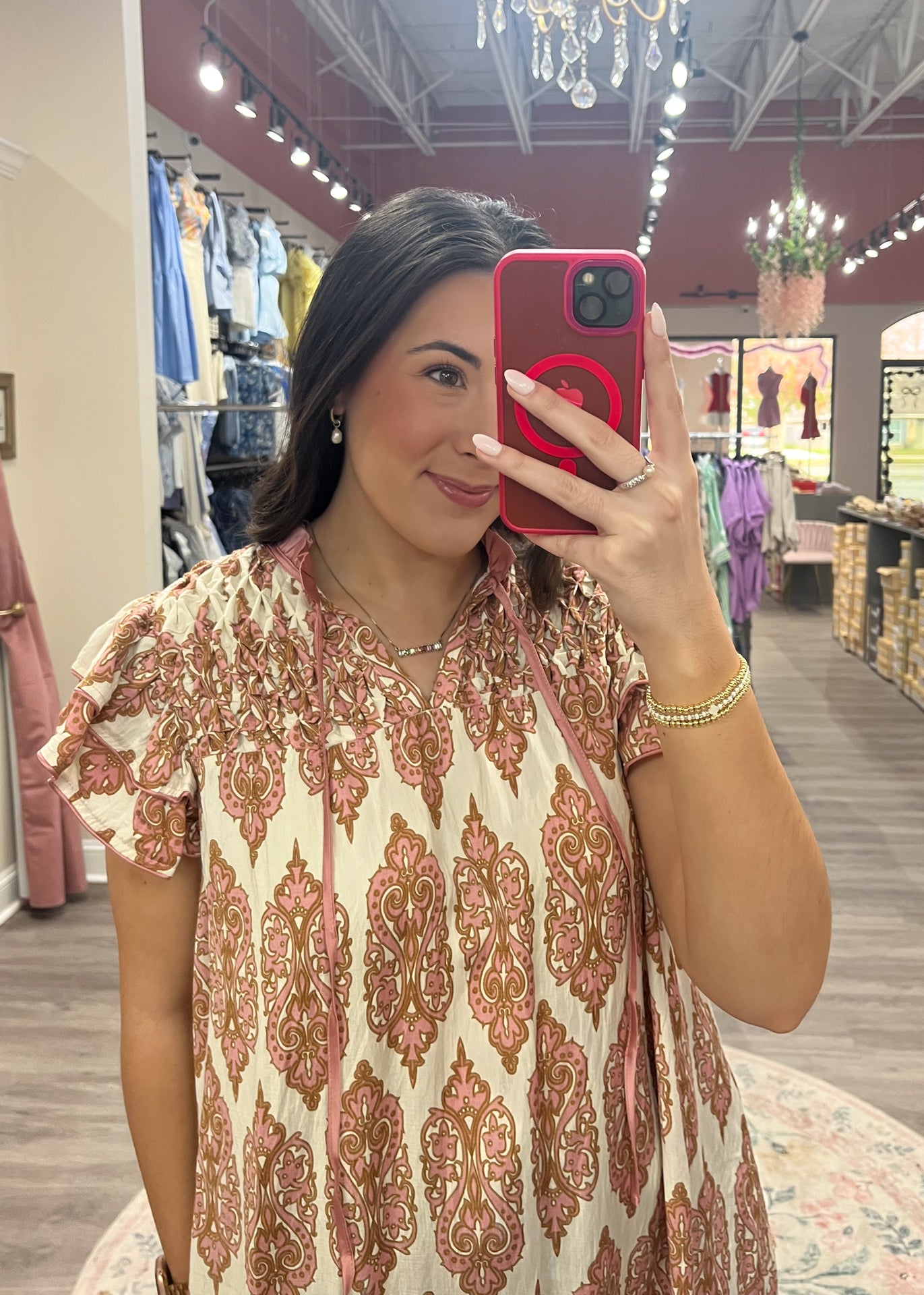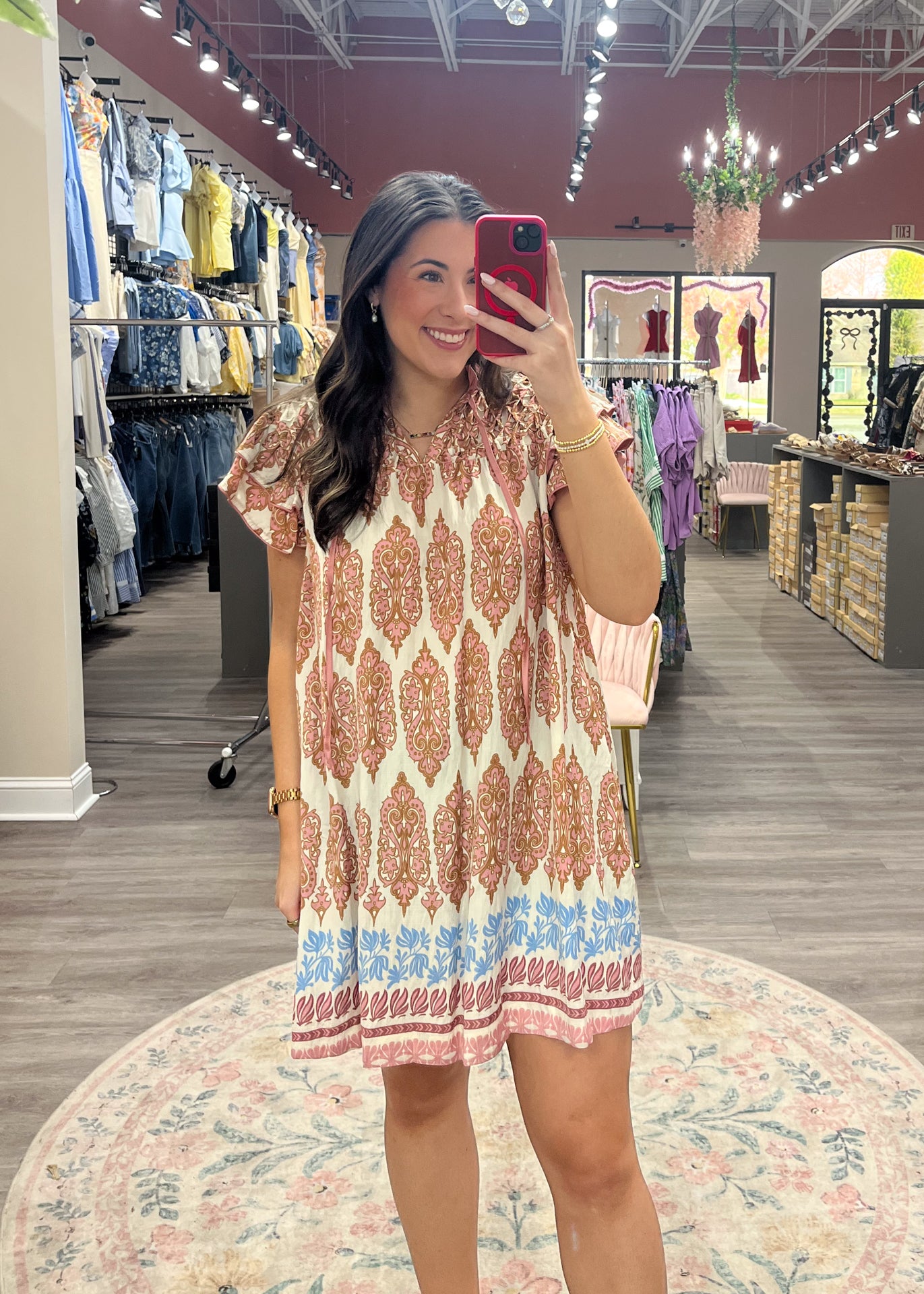 Soft, sweet, and effortlessly charming, the Rosewood Whimsy Dress is your go-to for spring days and sunny strolls. Featuring a flattering flowy silhouette with flutter sleeves and a delicate mixed print, this dress brings just the right touch of romance to your everyday wardrobe.