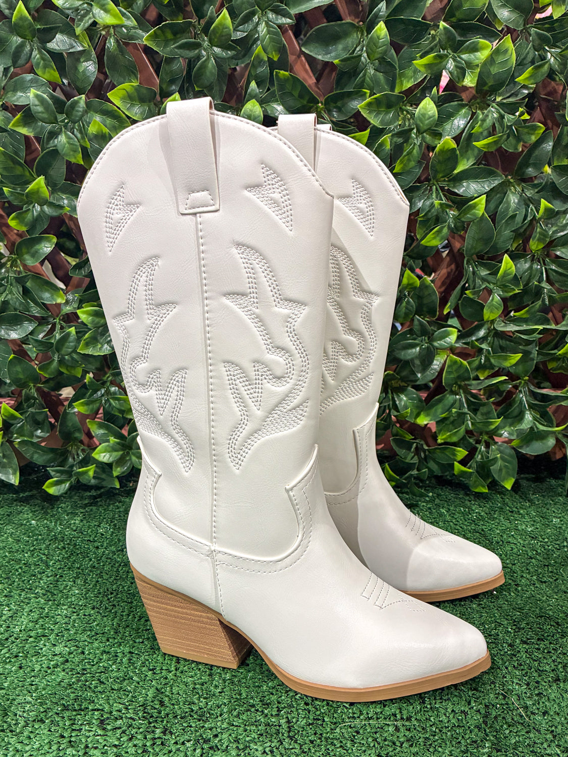 Step into your bold side with the Wildflower Rodeo Boot—a crisp white western boot that instantly elevates any outfit. The clean stitching, pointed toe, and stacked block heel make this pair equal parts classic country and modern chic. Perfect for concerts, gamedays, or adding a little southern charm to your everyday style.