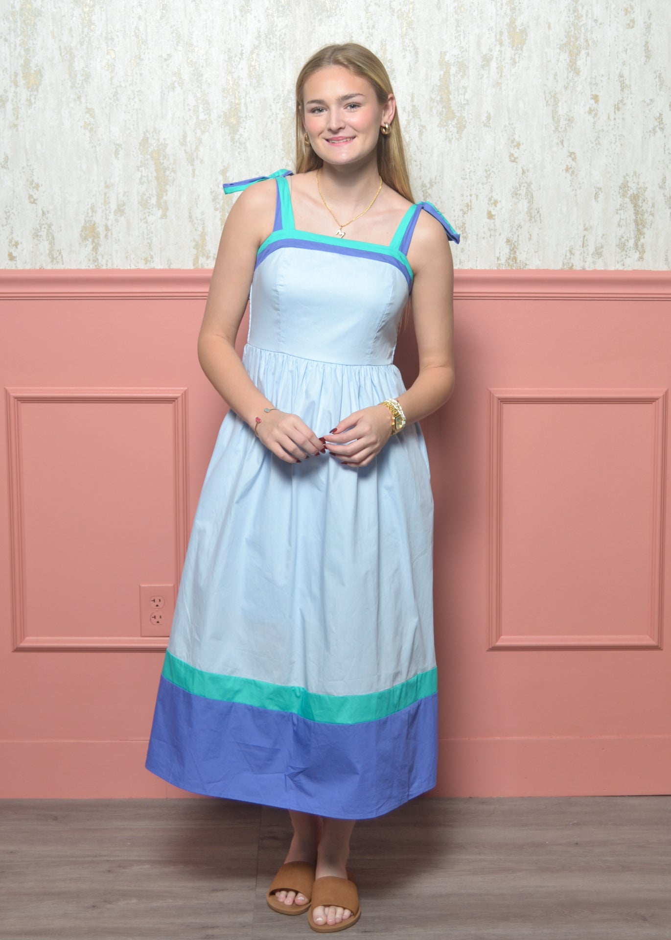 This breezy maxi dress brings fresh spring vibes with soft colorblocking and a flattering, easy-to-wear silhouette that’s perfect for sunny days and special occasions alike. From brunch dates to spring events, it’s a standout you’ll reach for all season long.