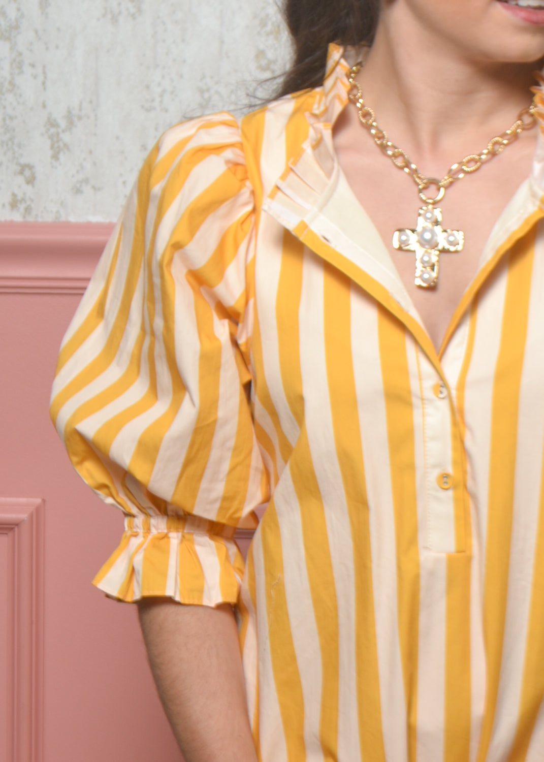 - Puff sleeves with elastic ruffle cuffs