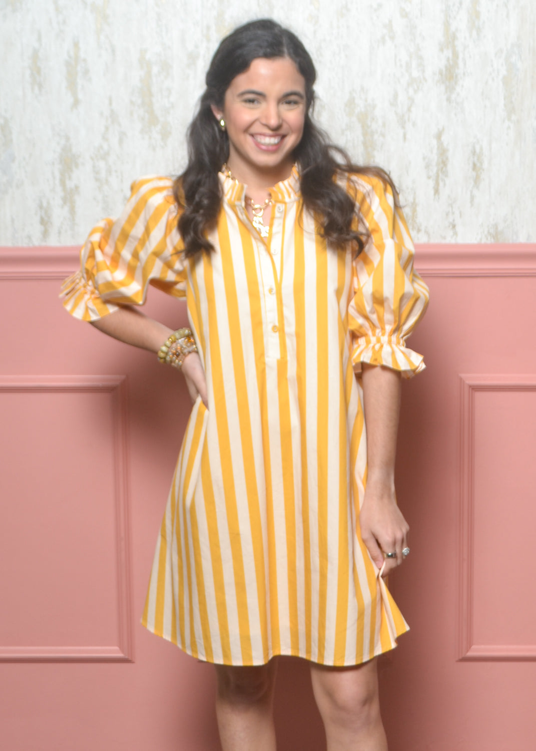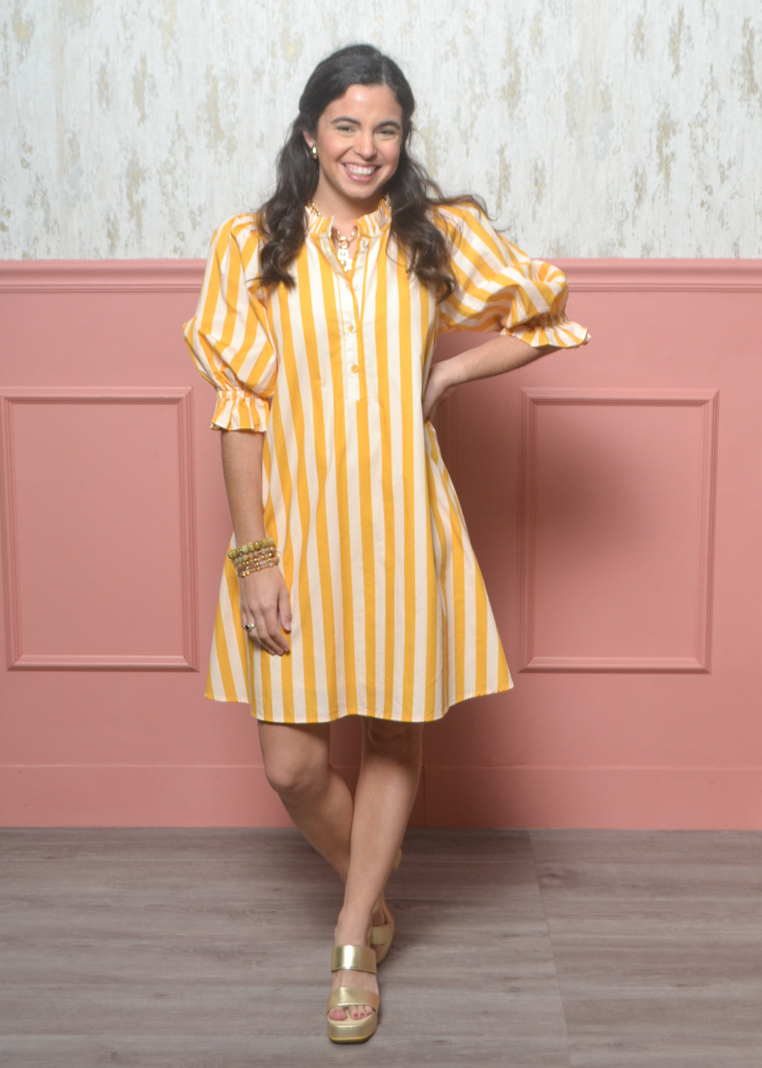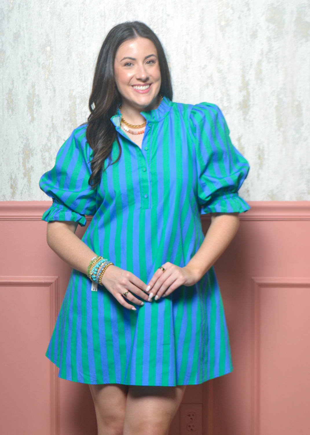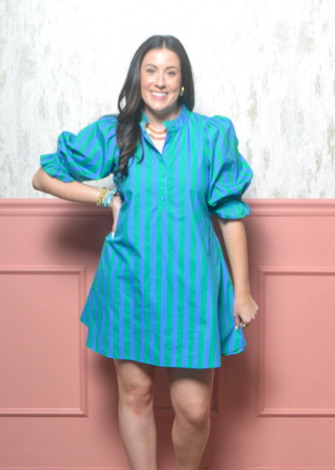 Polished, playful, and made to stand out — the Uptown Stripe Dress is your go-to for brunch dates, showers, game days, and everything in between. The bold vertical stripes and flattering fit make it an instant confidence booster.