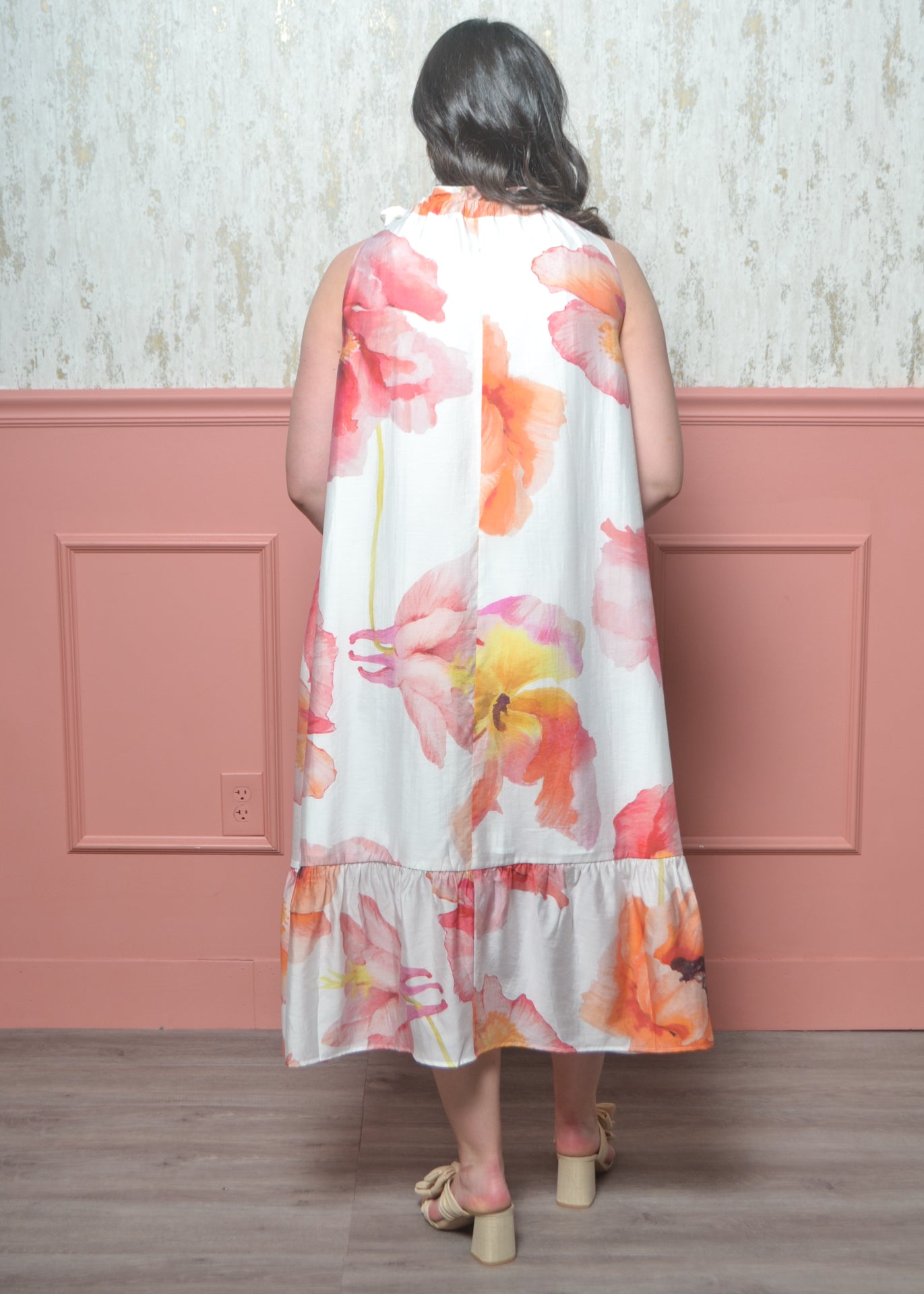 Light, airy, and full of color—this floral midi dress is made for easy, feel-good styling. The flowy silhouette and soft watercolor print give it that effortlessly pretty look you’ll reach for all season long.