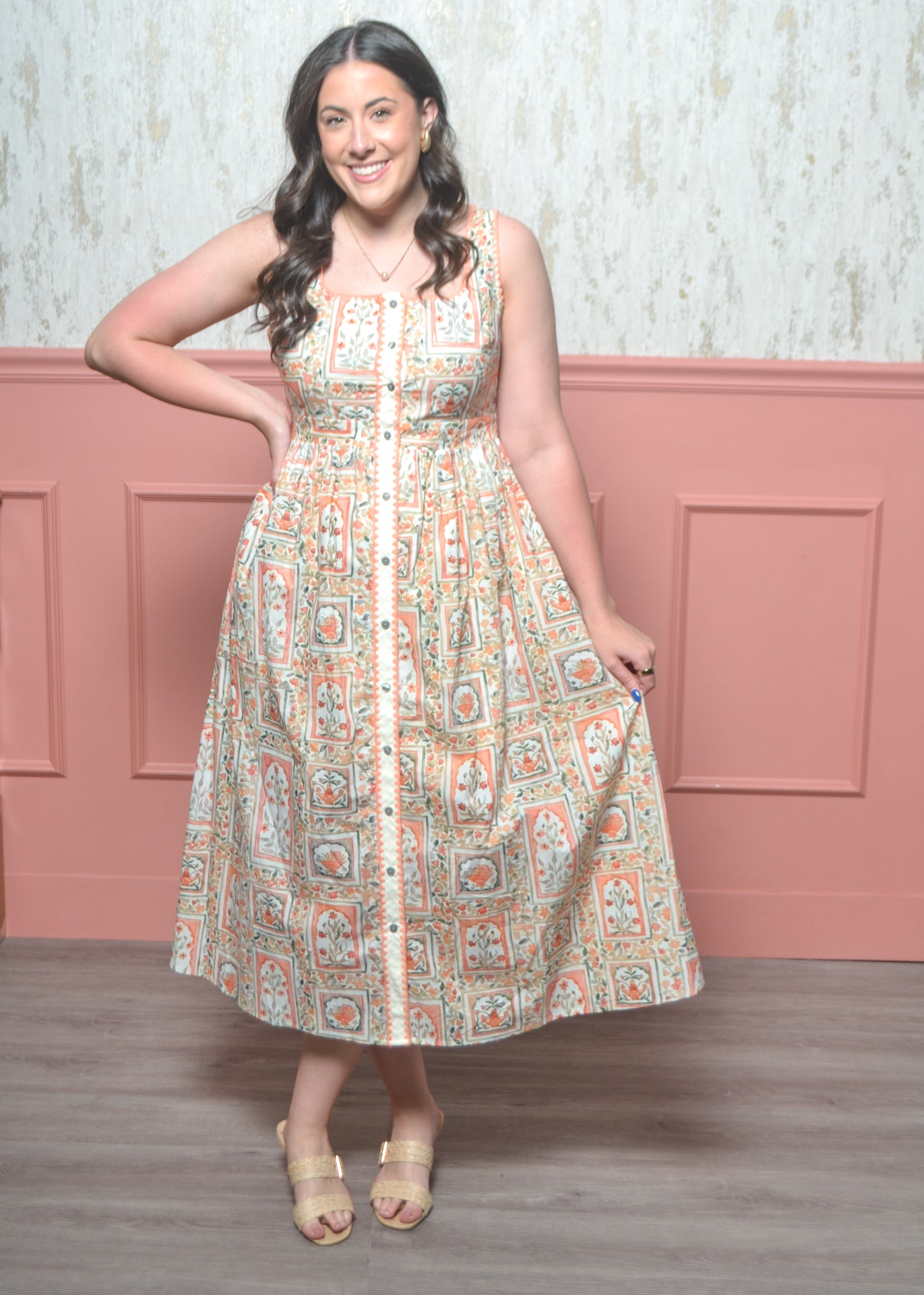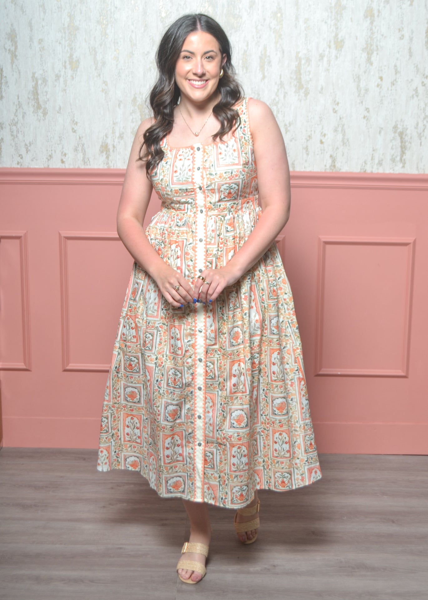 Charming, classic, and full of vintage-inspired detail—the Garden Postcard Midi Dress is a standout piece for sunny days. With its structured bodice and soft, flowy skirt, it’s the perfect mix of polished and feminine.