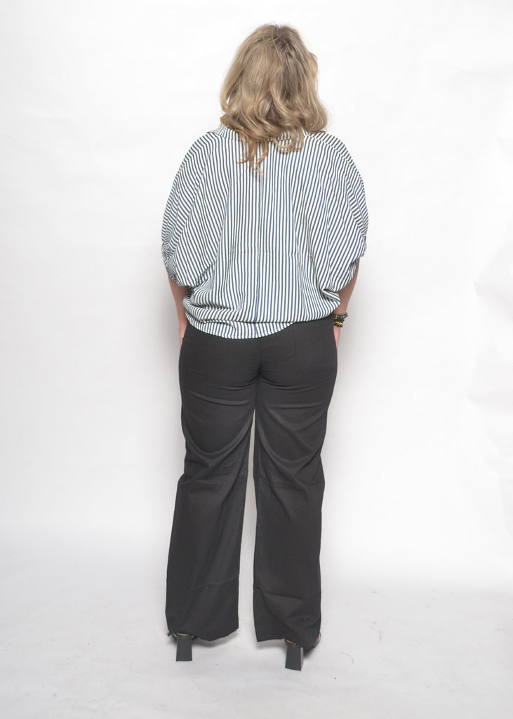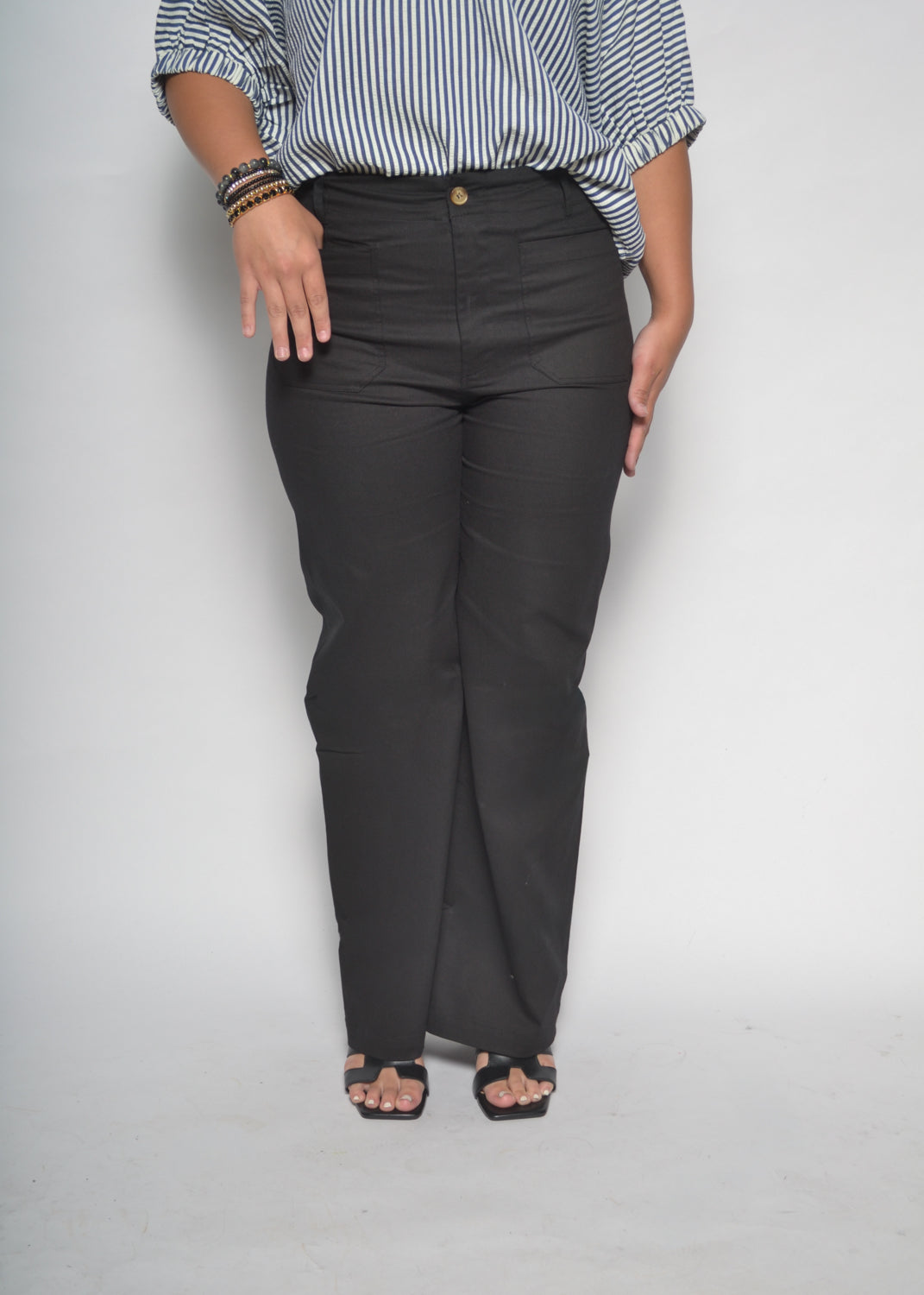 Sleek and versatile, these black pants are a timeless wardrobe essential. Designed with a flattering high-rise fit and straight-leg silhouette, they’re perfect for everything from workdays to nights out.
