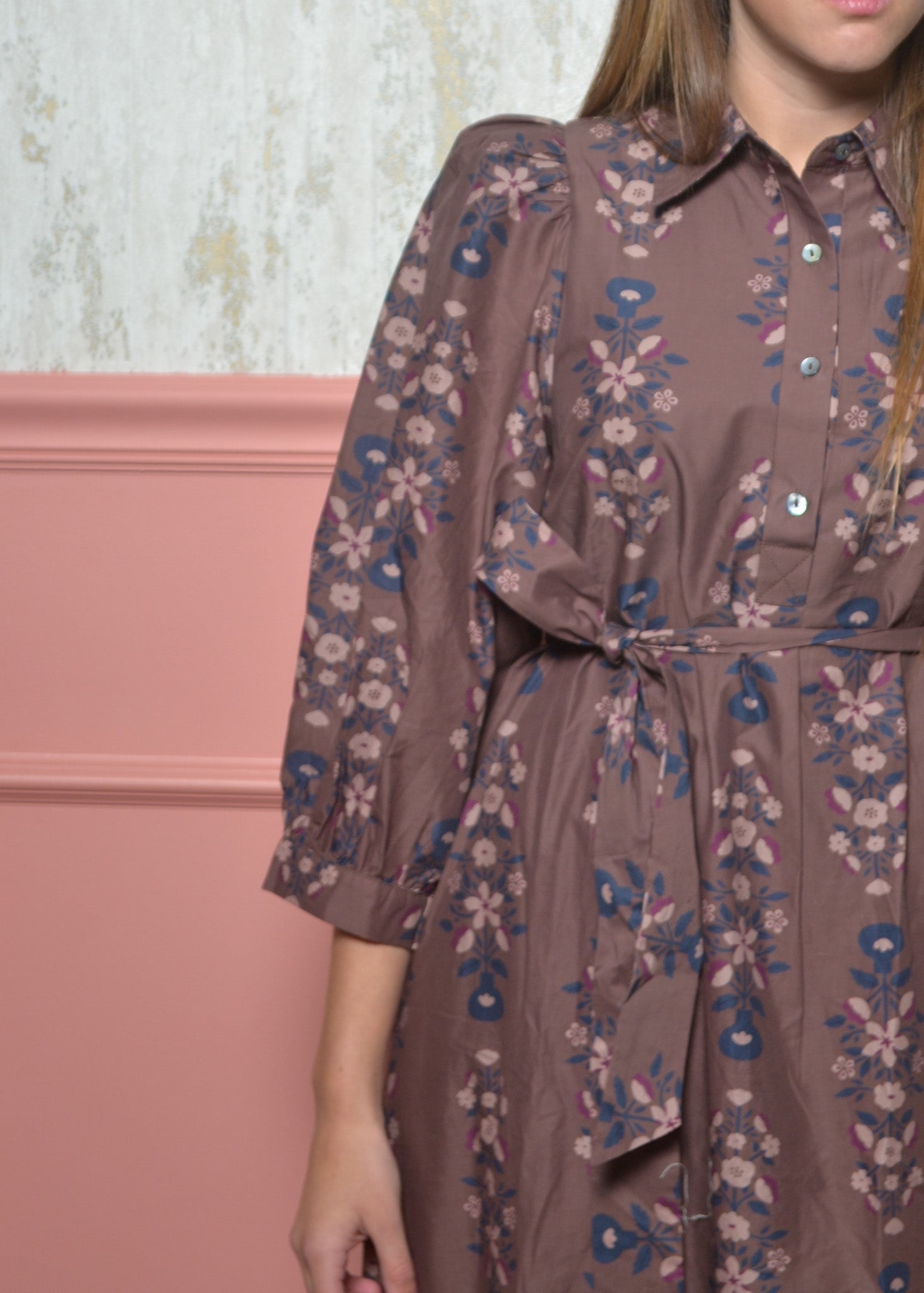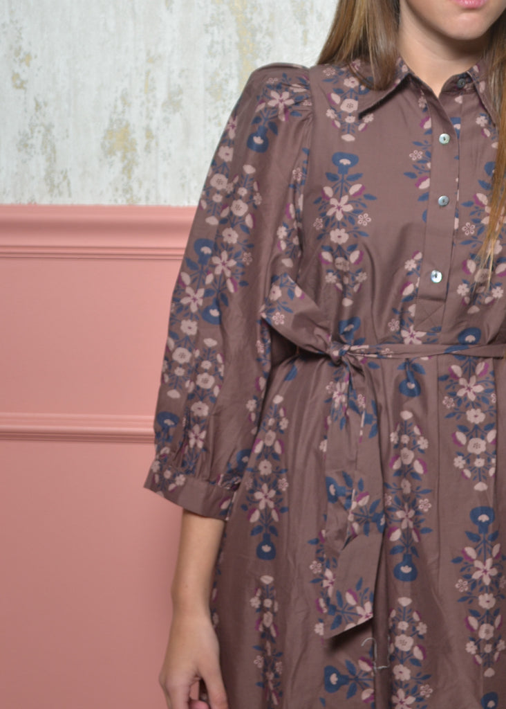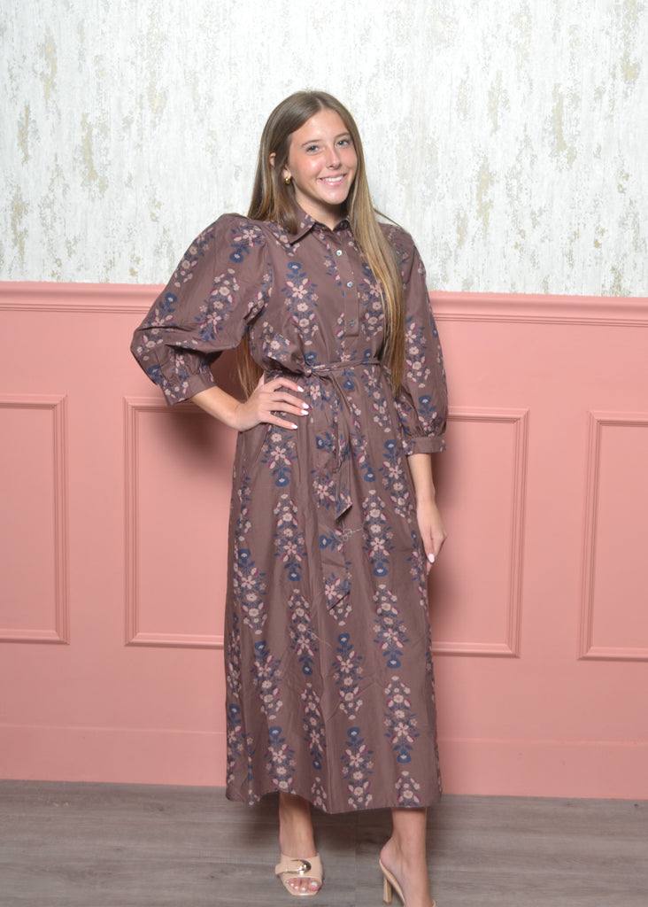 Romantic with a touch of western charm, The Meadow Bloom Maxi is the perfect statement piece for fall. This button-front dress features a soft mauve-taupe base covered in vintage-inspired floral detailing, ultra-feminine puff sleeves, and a removable waist tie for a flattering, customizable silhouette. The lightweight fabric gives it beautiful movement, making it ideal for church, dinners, showers, or strolling through fall markets.