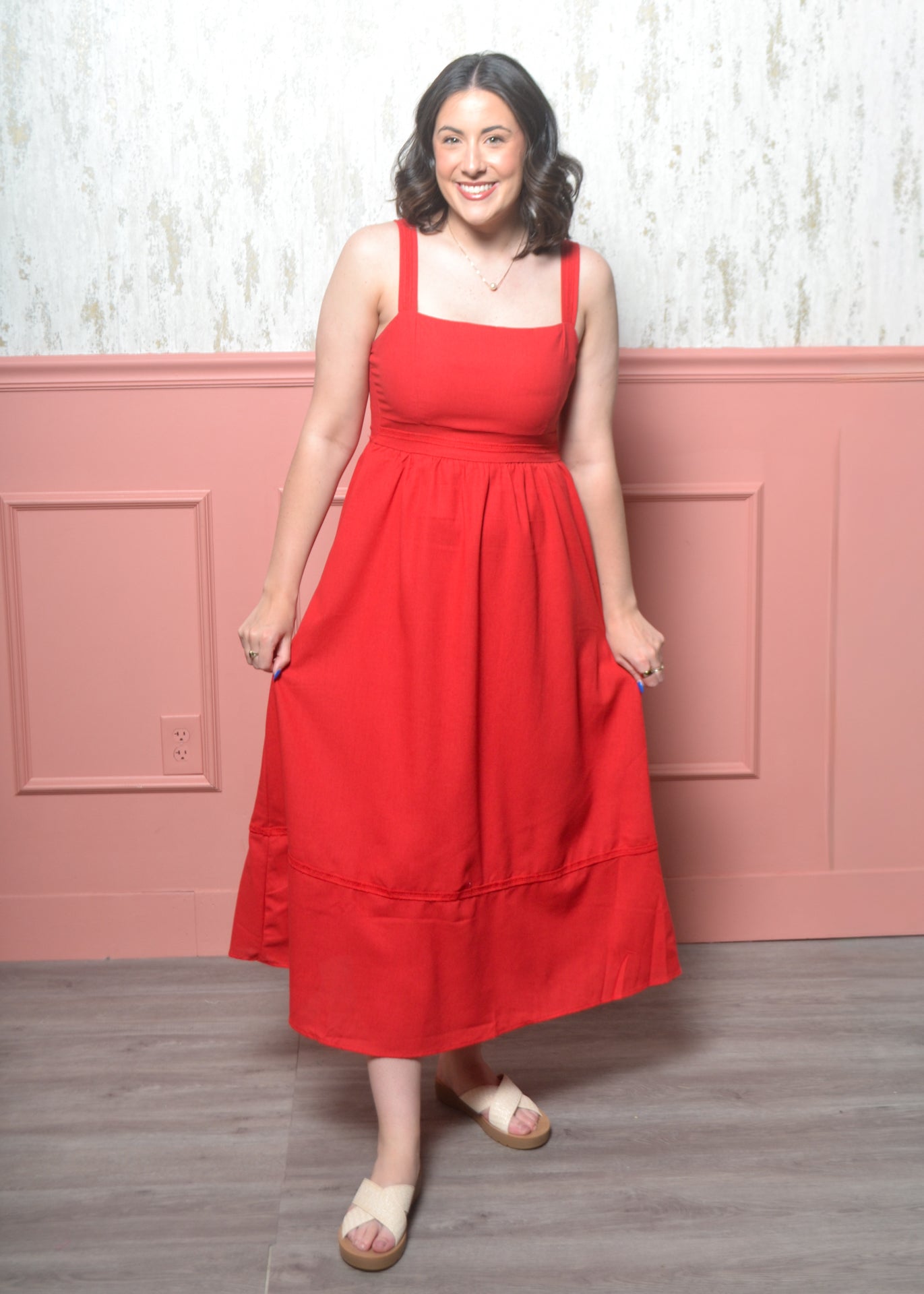 This effortless red midi maxi dress is made for days when you want to feel put together with zero effort. The smocked bodice gives you a flattering, comfortable fit while the flowy skirt moves beautifully with you.