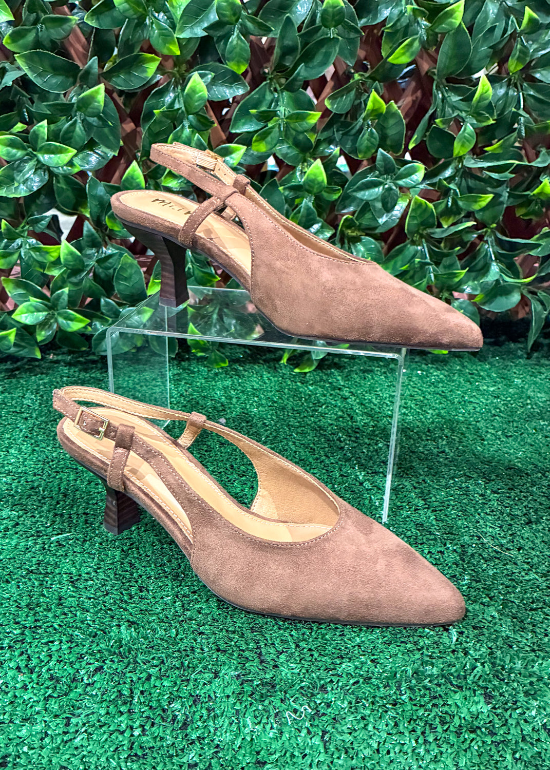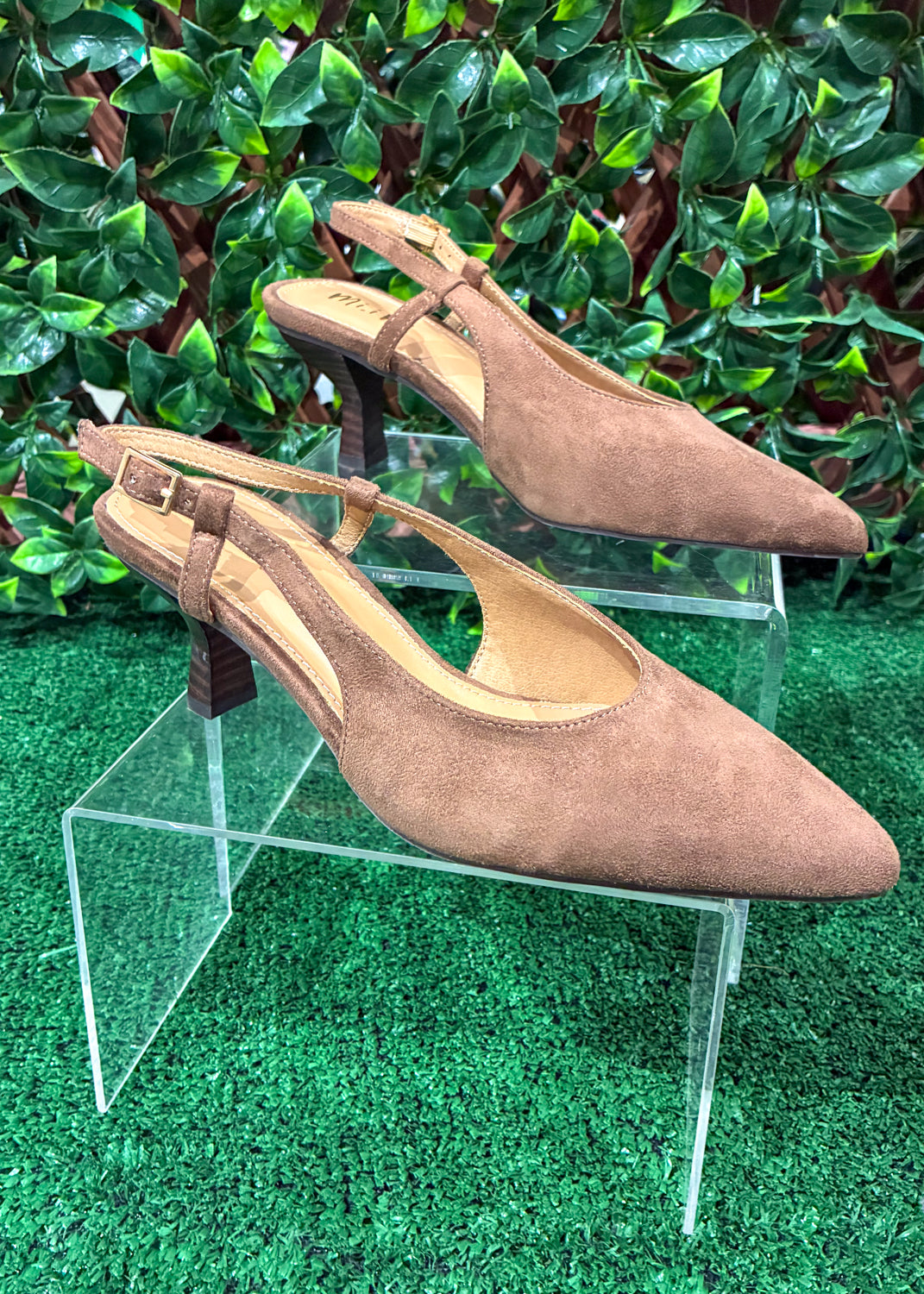 Meet the Kitty Sling-Back Heel, your new go-to for a polished, easy-to-style look. This sleek suede heel features a pointed toe, an adjustable sling-back strap, and a sculpted mid-heel that adds just the right amount of height without sacrificing comfort. Whether you're dressing for the office, a dinner date, or a holiday event, this neutral beauty works with everything in your closet.