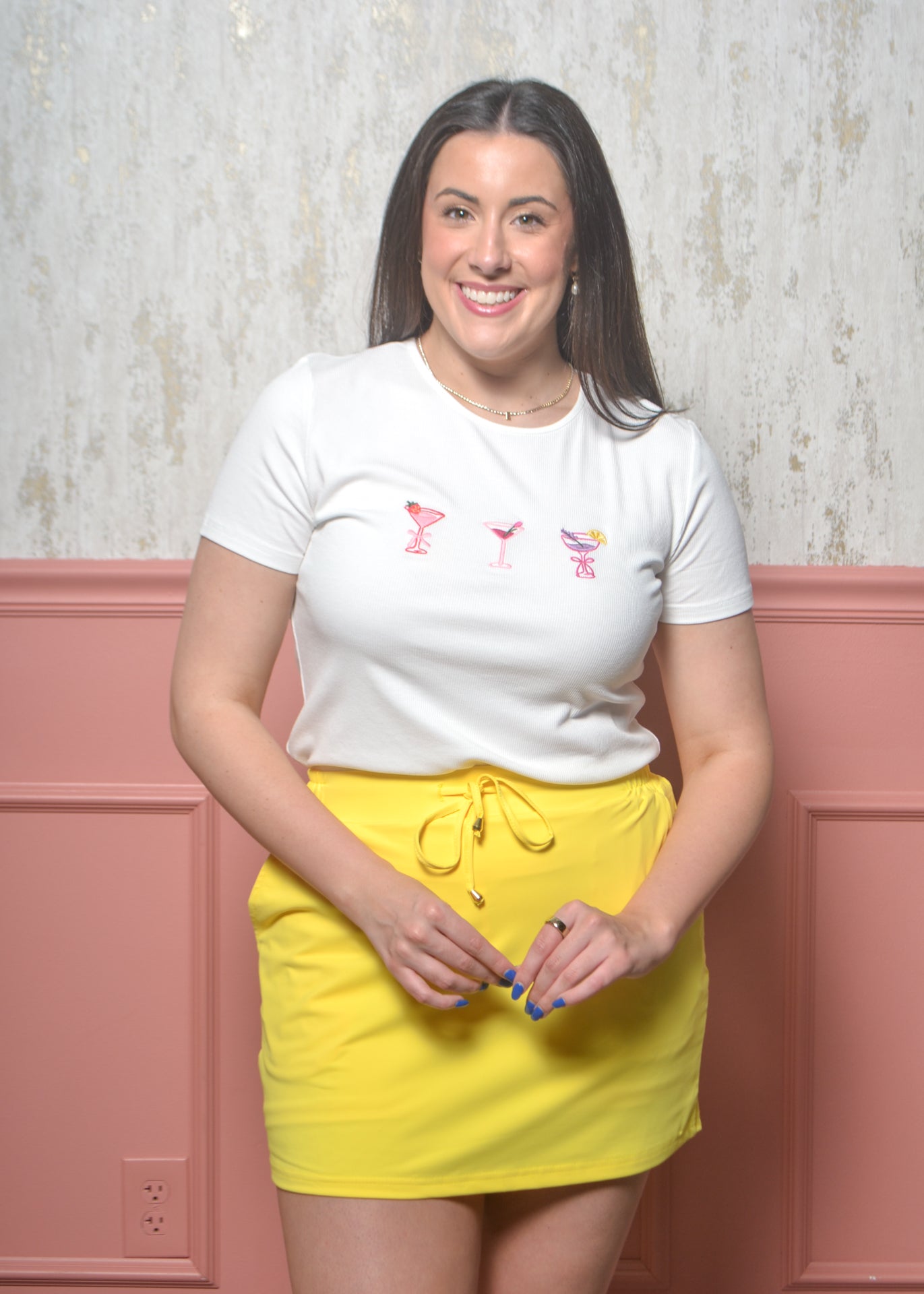 Cheers to cute and casual style with the Sip Happens Tee. This playful graphic tee features three embroidered cocktail designs across the front, adding a fun pop of color and personality to an easy everyday top. Perfect for girls’ nights, brunch dates, vacations, or any time you’re ready to raise a glass in style.