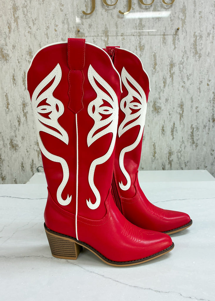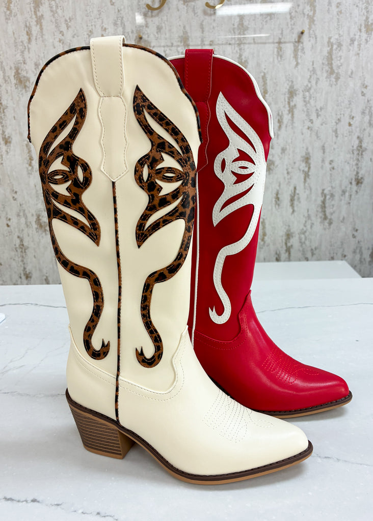 Make a statement wherever you go in The Wild Whisper Boot — a bold blend of western flair and fierce fashion. This show-stopping boot features intricate contrast detailing that turns every step into a moment. Available in cream with leopard inlay or red with white western stitching, each pair adds a striking edge to your fall wardrobe. Designed with a pointed toe, side zipper, and stacked heel for both comfort and style, these boots are ready for concerts, game days, and every outfit in between.