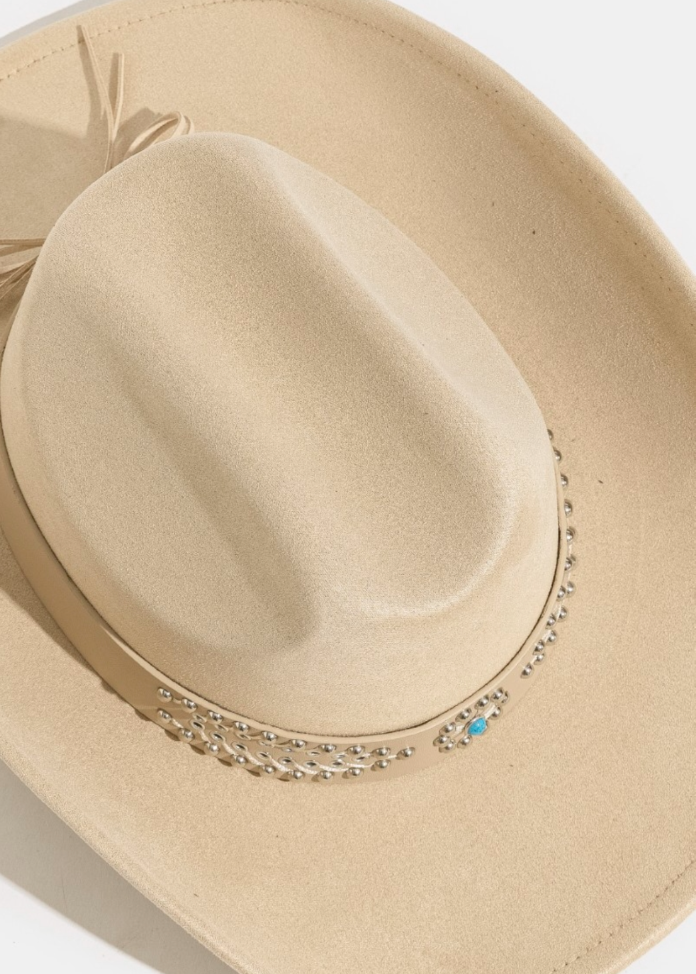 - Studded hatband with turquoise-inspired accent
