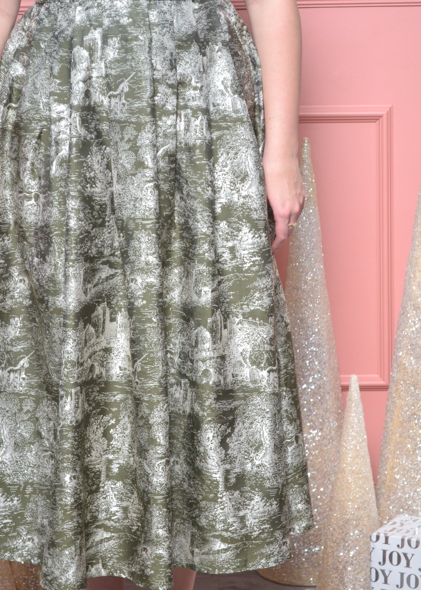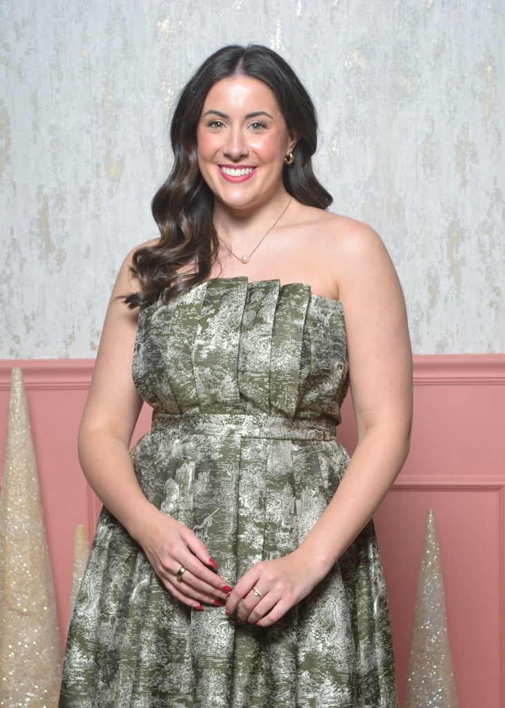 Make a grand entrance this holiday season in the Regal Romance Dress — a timeless midi crafted from luxe jacquard fabric that shimmers with every step. With its structured bodice and full skirt, this elegant silhouette is perfect for Christmas parties, weddings, or any formal celebration.