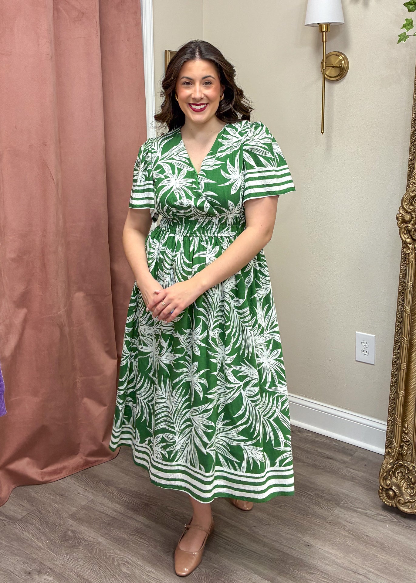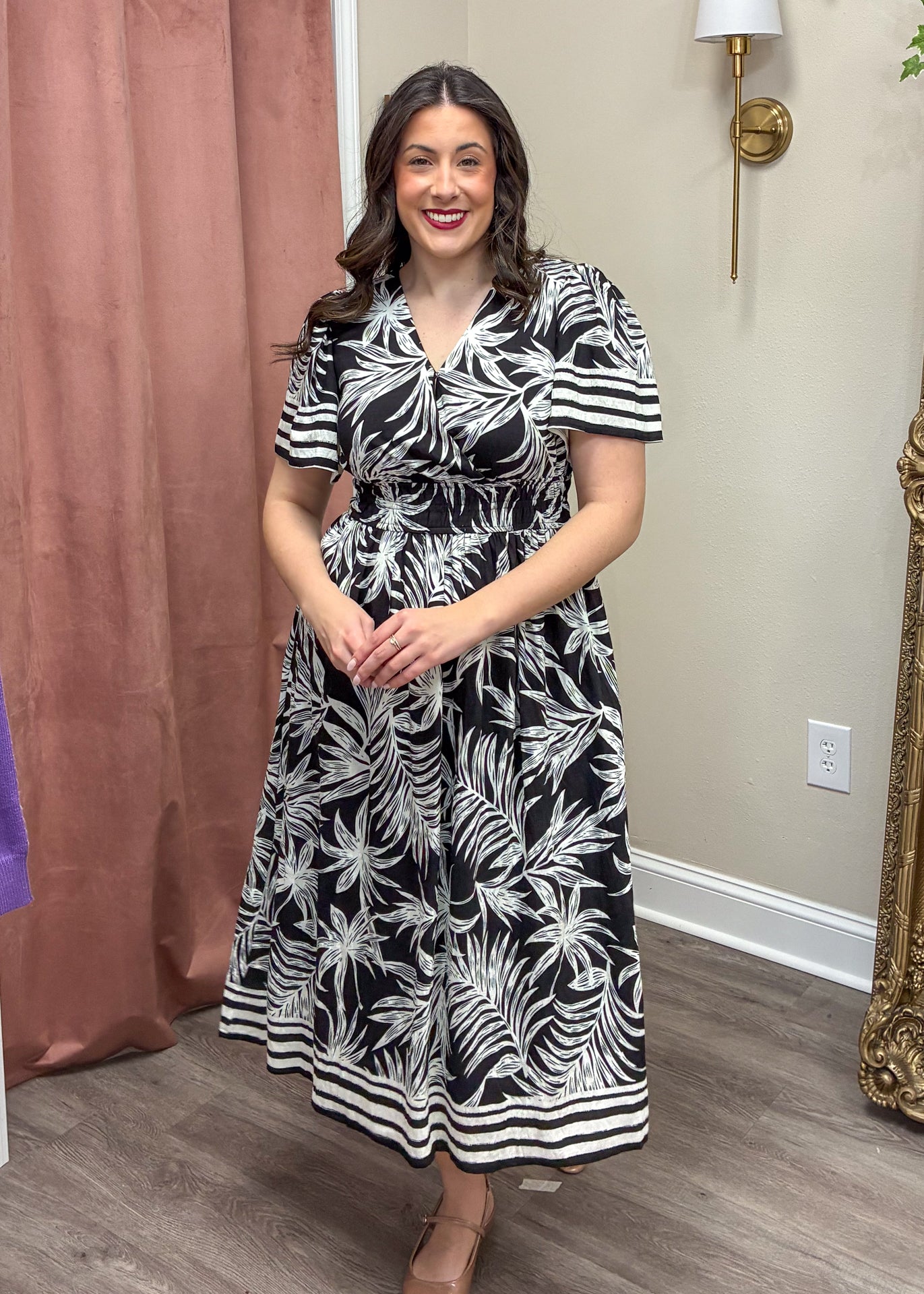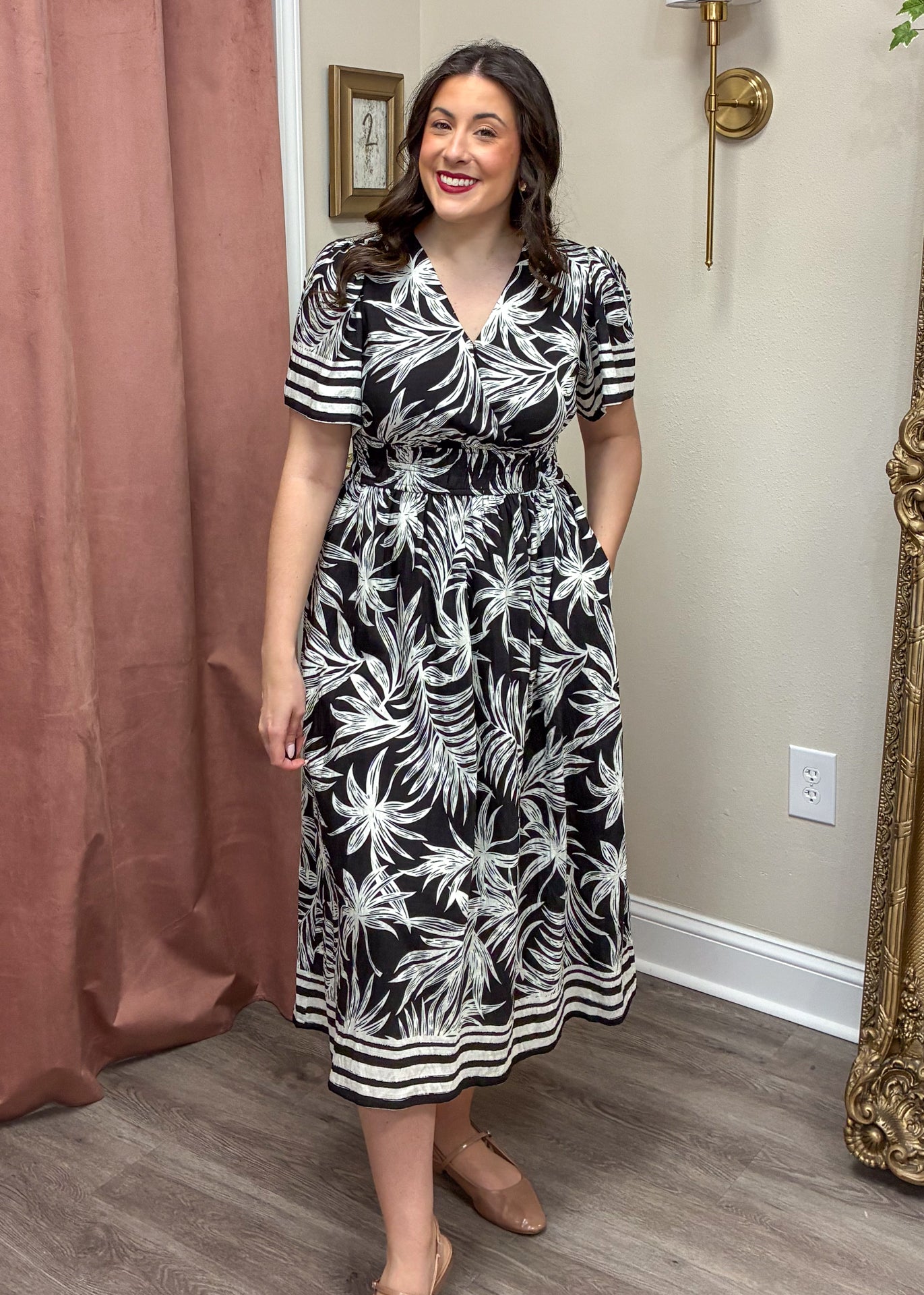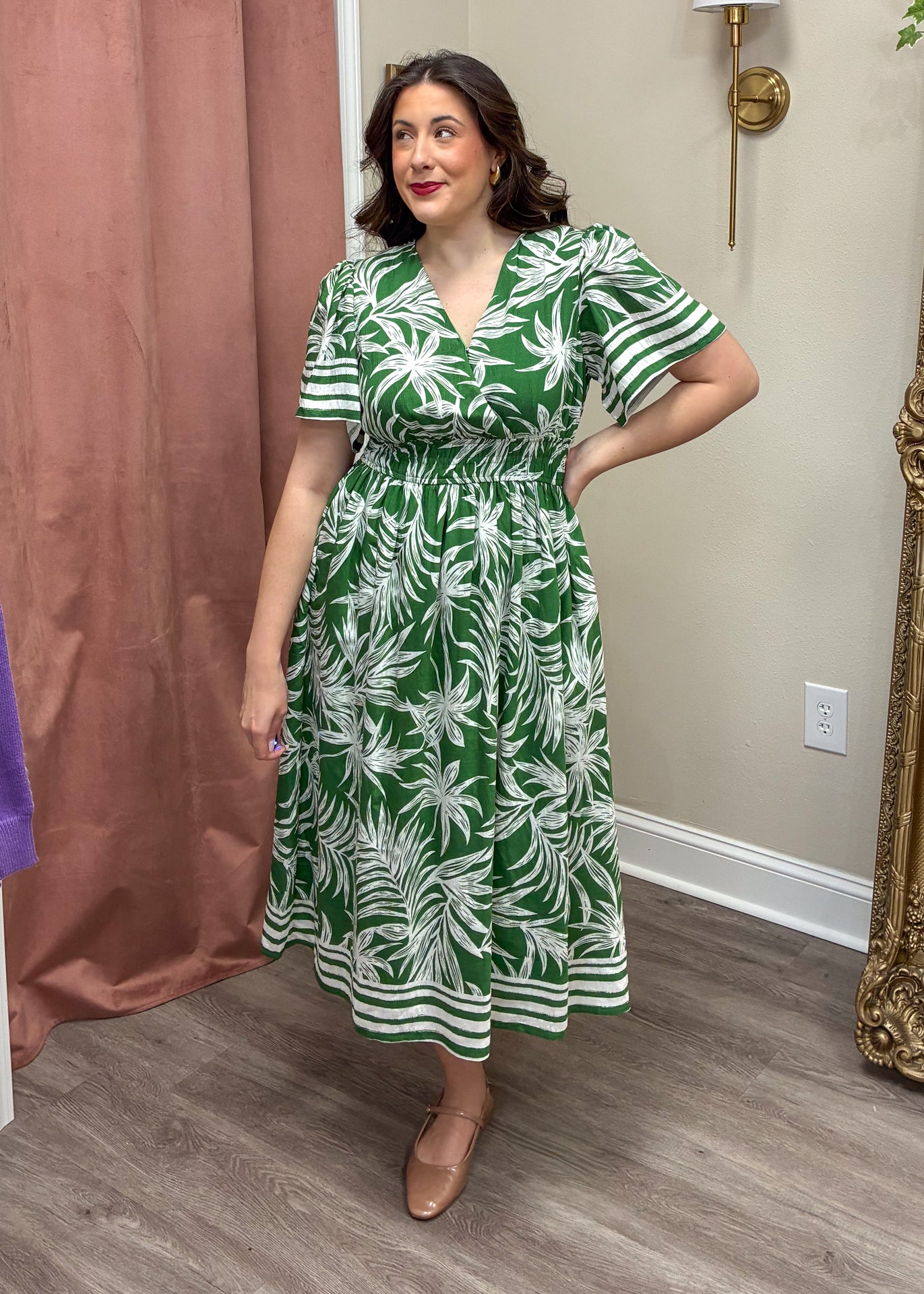Easy, breezy, and effortlessly flattering, the Palm Path Midi Dress is your go-to for warm days when you want comfort without sacrificing style. The flowy silhouette and leafy print make it perfect for brunch, vacations, or everyday wear.