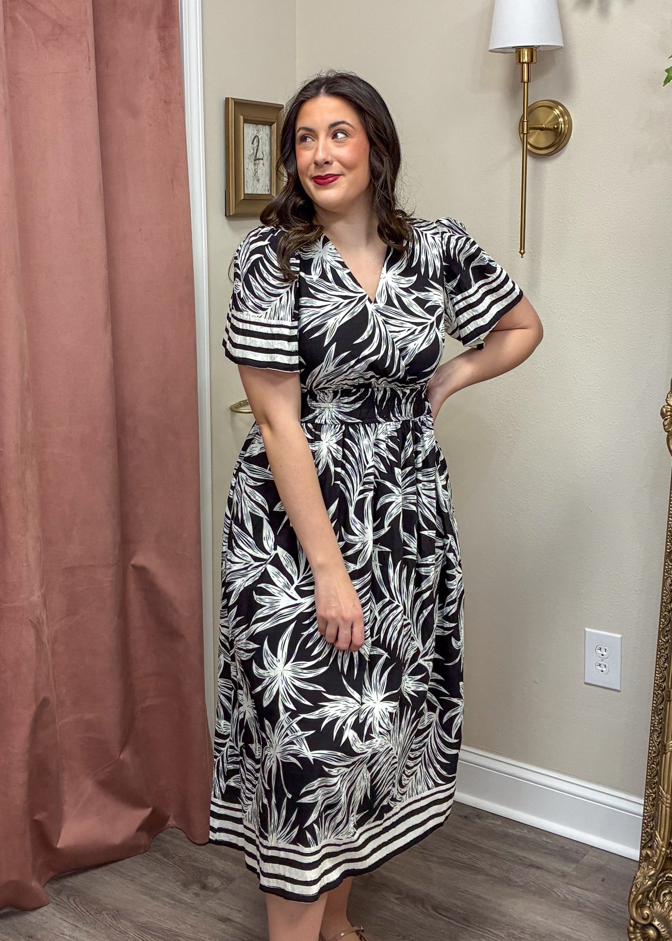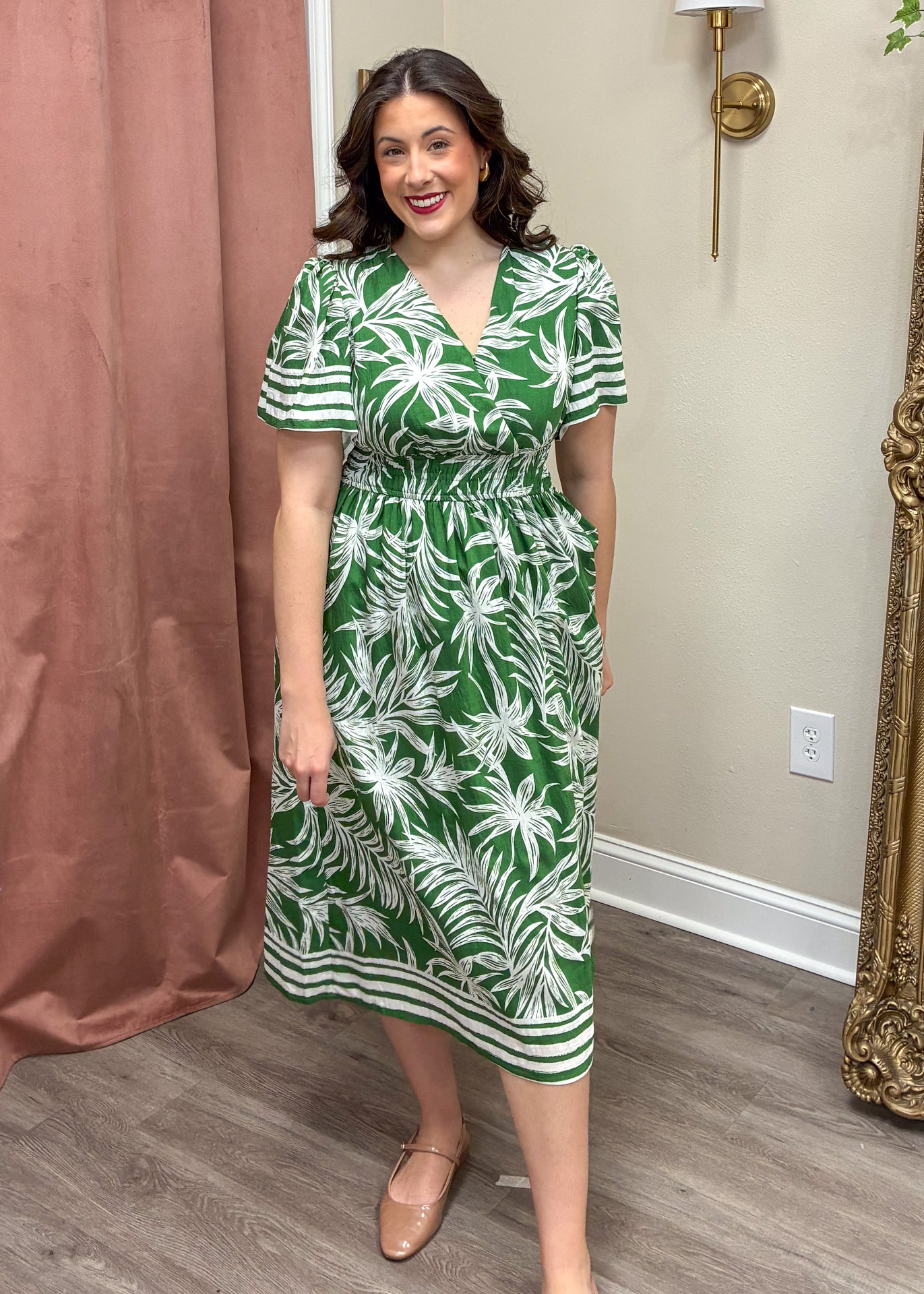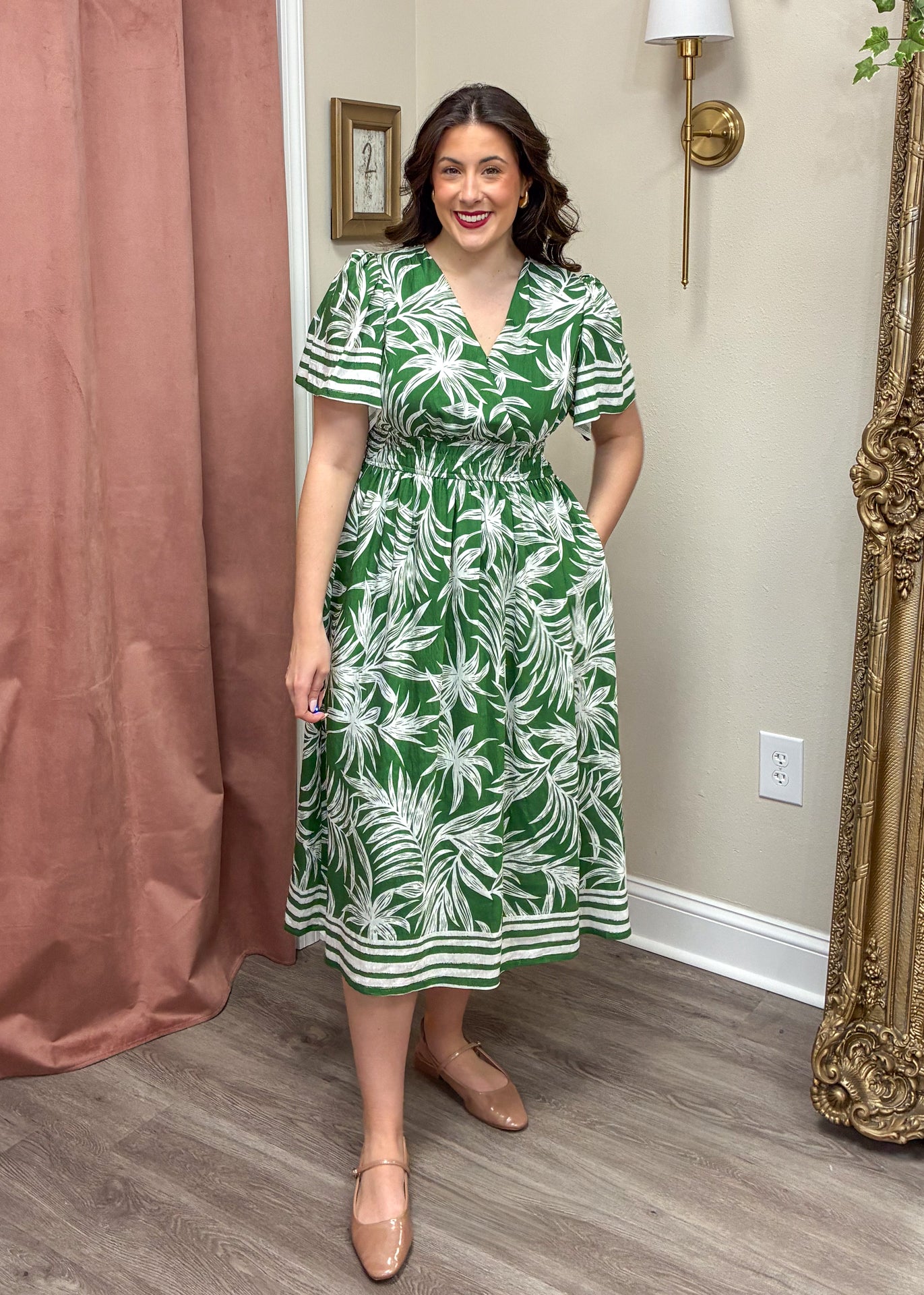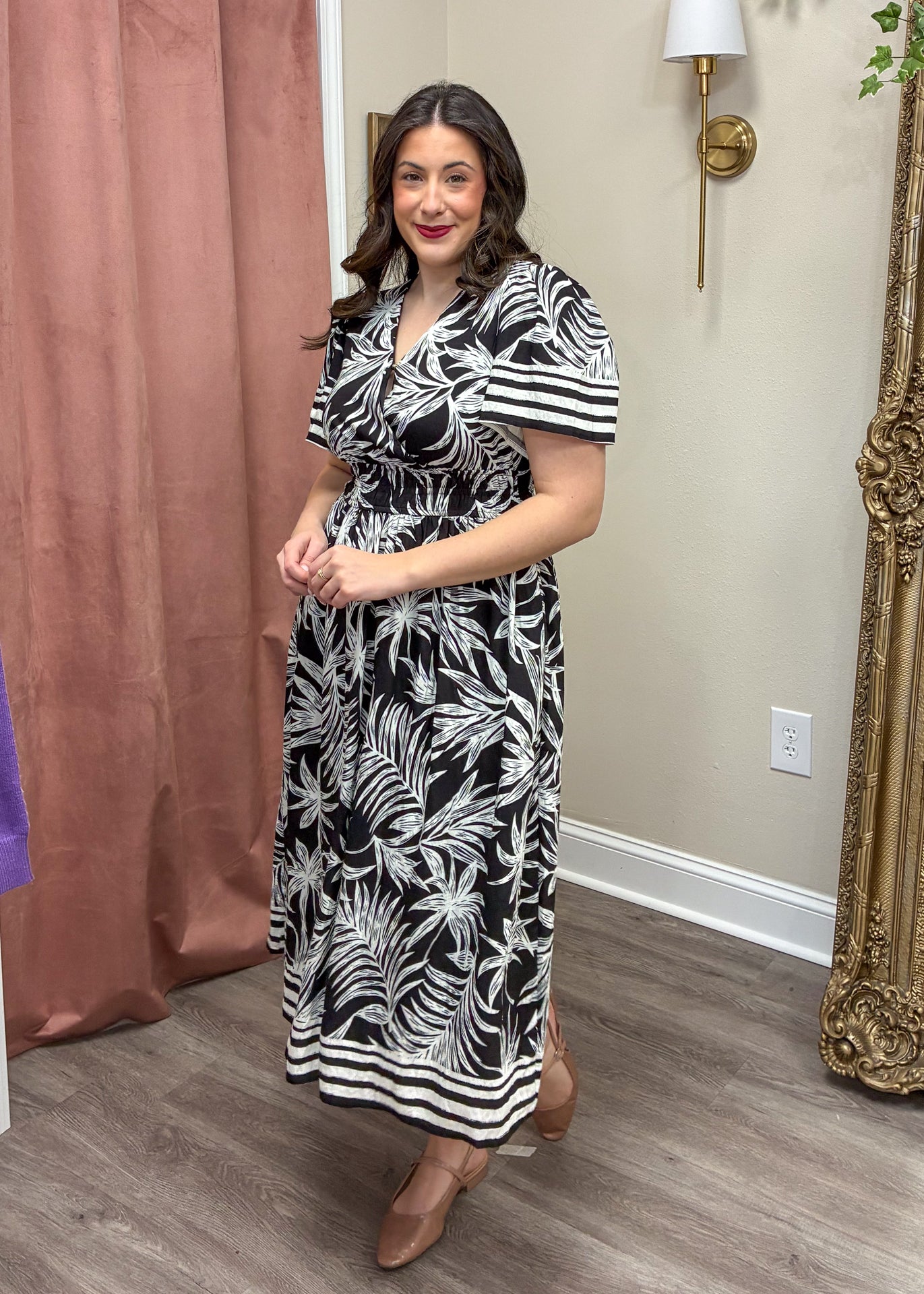 Easy, breezy, and effortlessly flattering, the Palm Path Midi Dress is your go-to for warm days when you want comfort without sacrificing style. The flowy silhouette and leafy print make it perfect for brunch, vacations, or everyday wear.