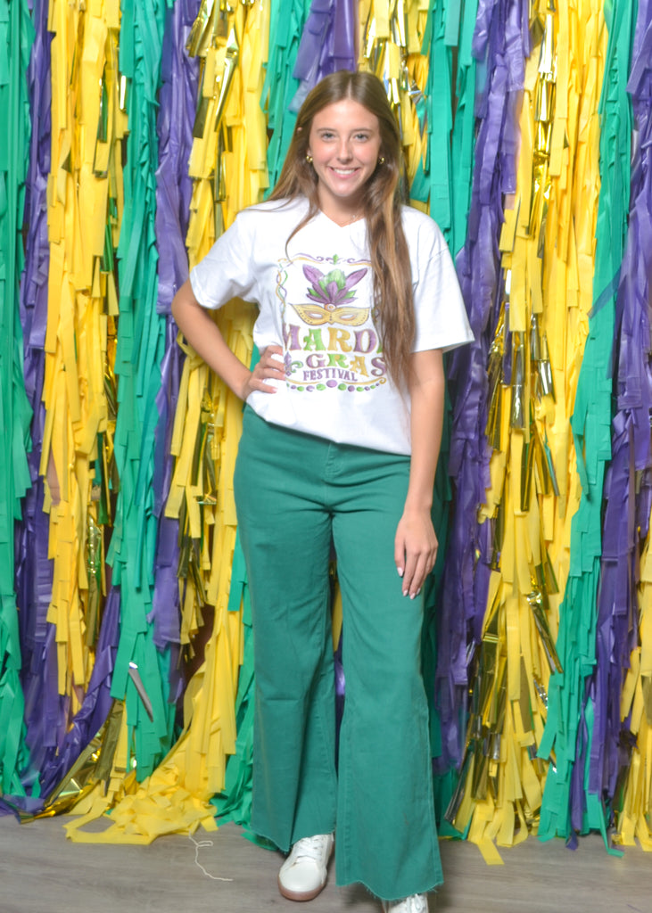 Bold and bright, the Mardi Gras Festival Mask Tee features a classic carnival mask with feathers, beads, and ornate lettering. It’s the perfect tee for festival lovers and parade-goers.