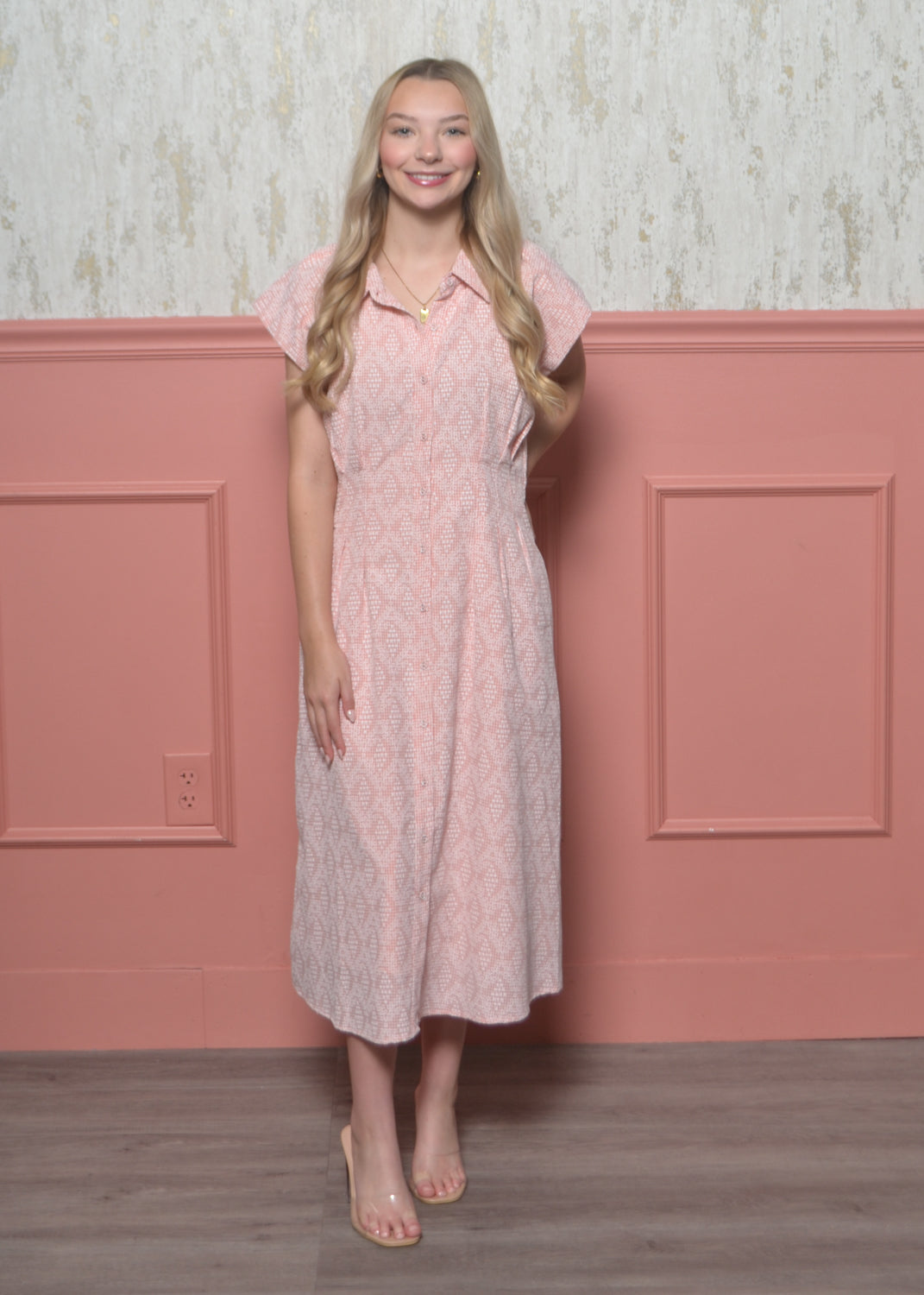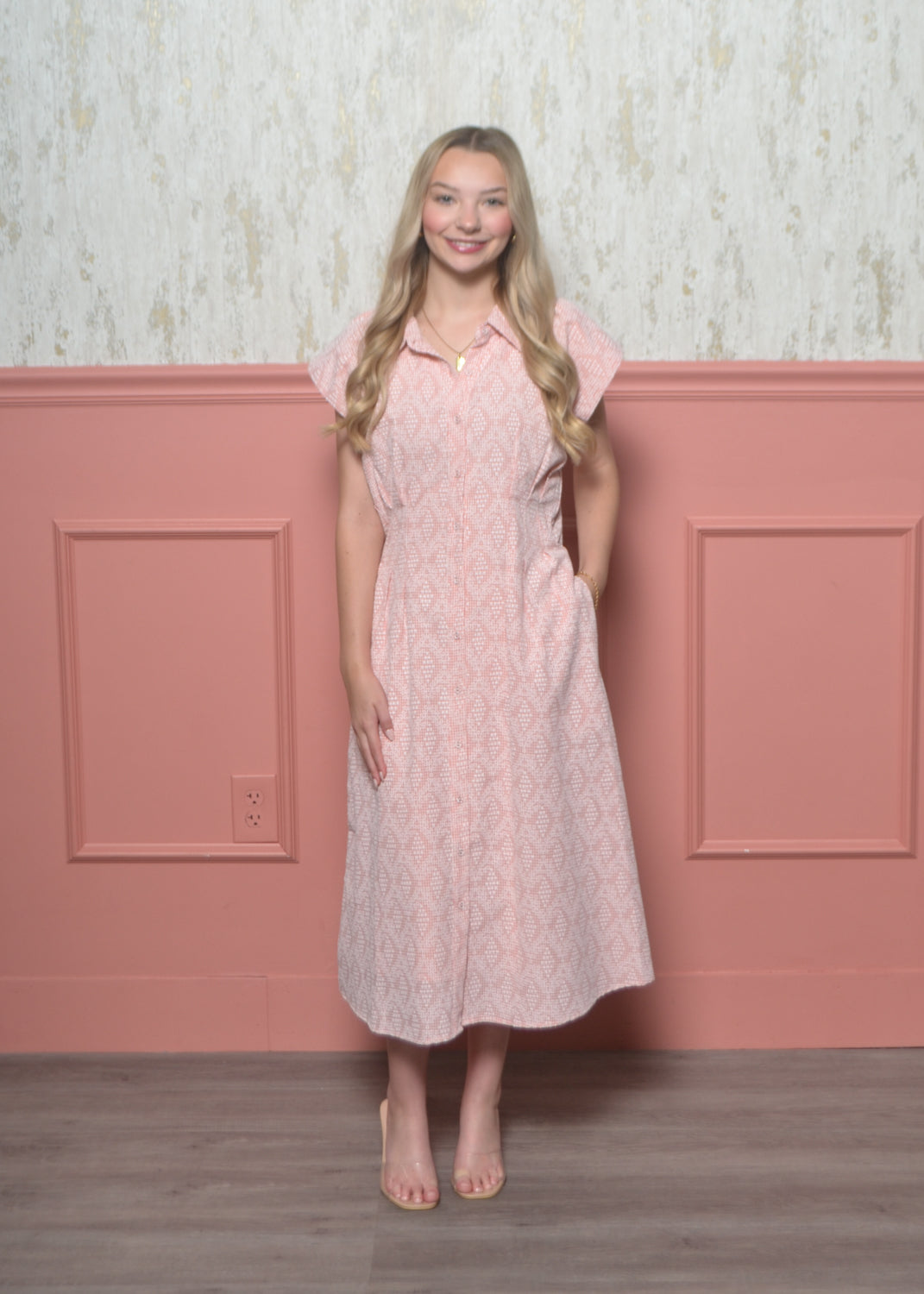 Polished, feminine, and easy to wear—this soft blush maxi is the perfect blend of structured and sweet. It’s an effortless go-to for days when you want to look put together without overthinking it.