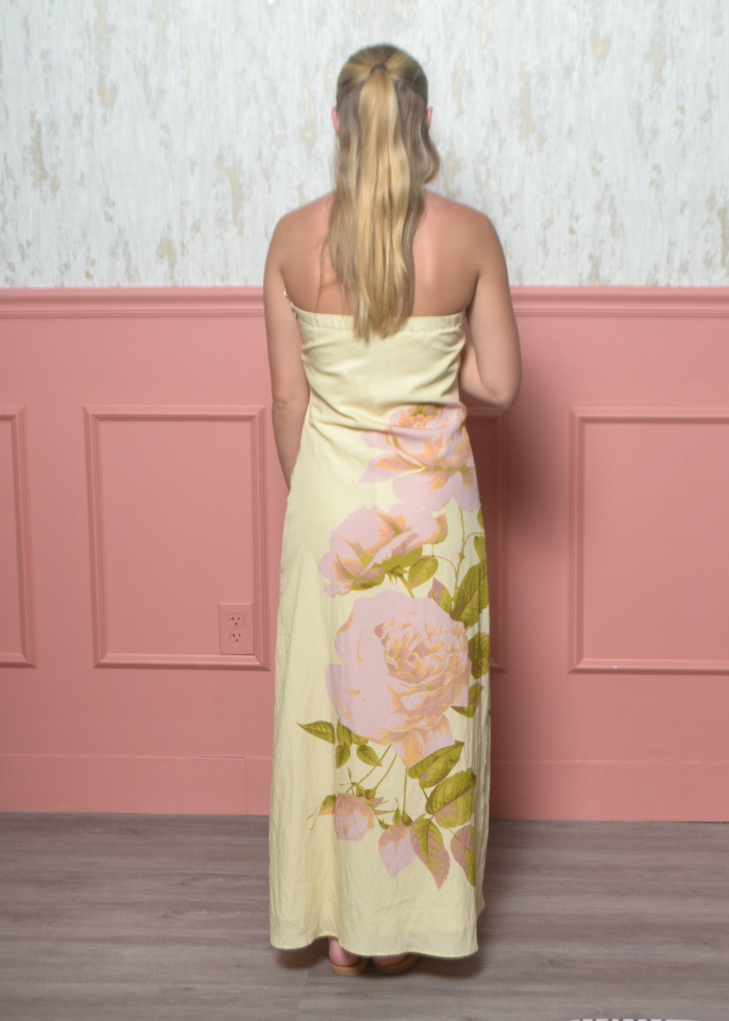 A soft, feminine moment you’ll reach for again and again—this strapless floral maxi is effortlessly pretty with just the right touch of romance. The delicate pastel tones and oversized floral print give it that dreamy, sunset-inspired feel.