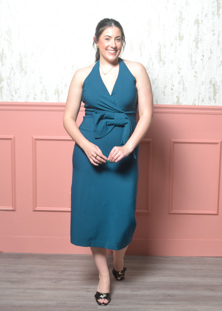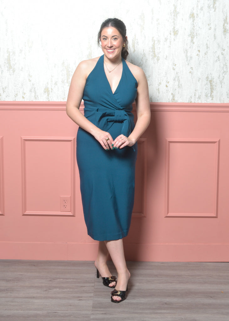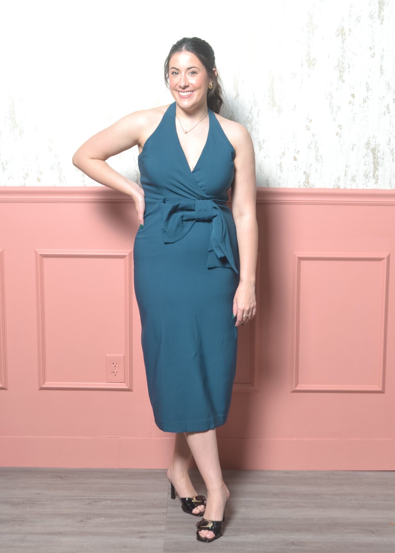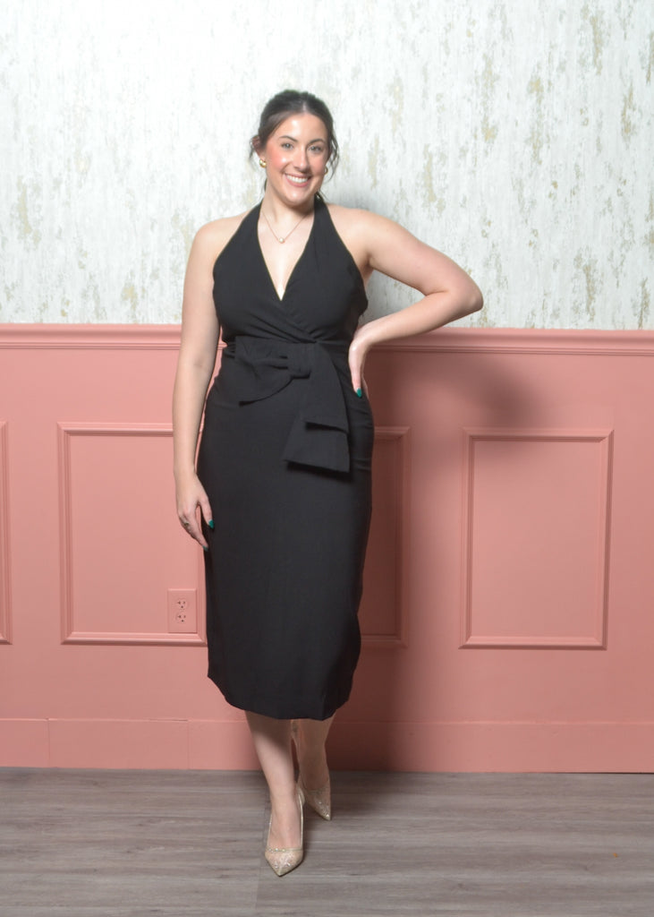 Elevate your next night out with The Classic Wrap Halter Midi Dress — a sleek, timeless silhouette that flatters every curve. This dress features a deep V-neck halter top, a wrap-style front, and a statement waist tie that cinches perfectly for a defined, feminine shape. Made in two rich color options, it’s the ideal choice for holiday parties, cocktail events, date nights, or any moment you want to feel polished and confident.