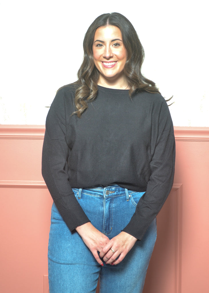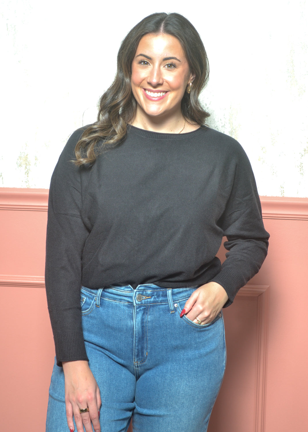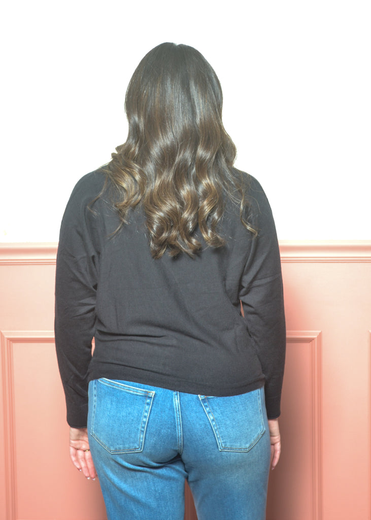 A timeless essential for layering season — this soft black knit top brings effortless sophistication to any outfit.