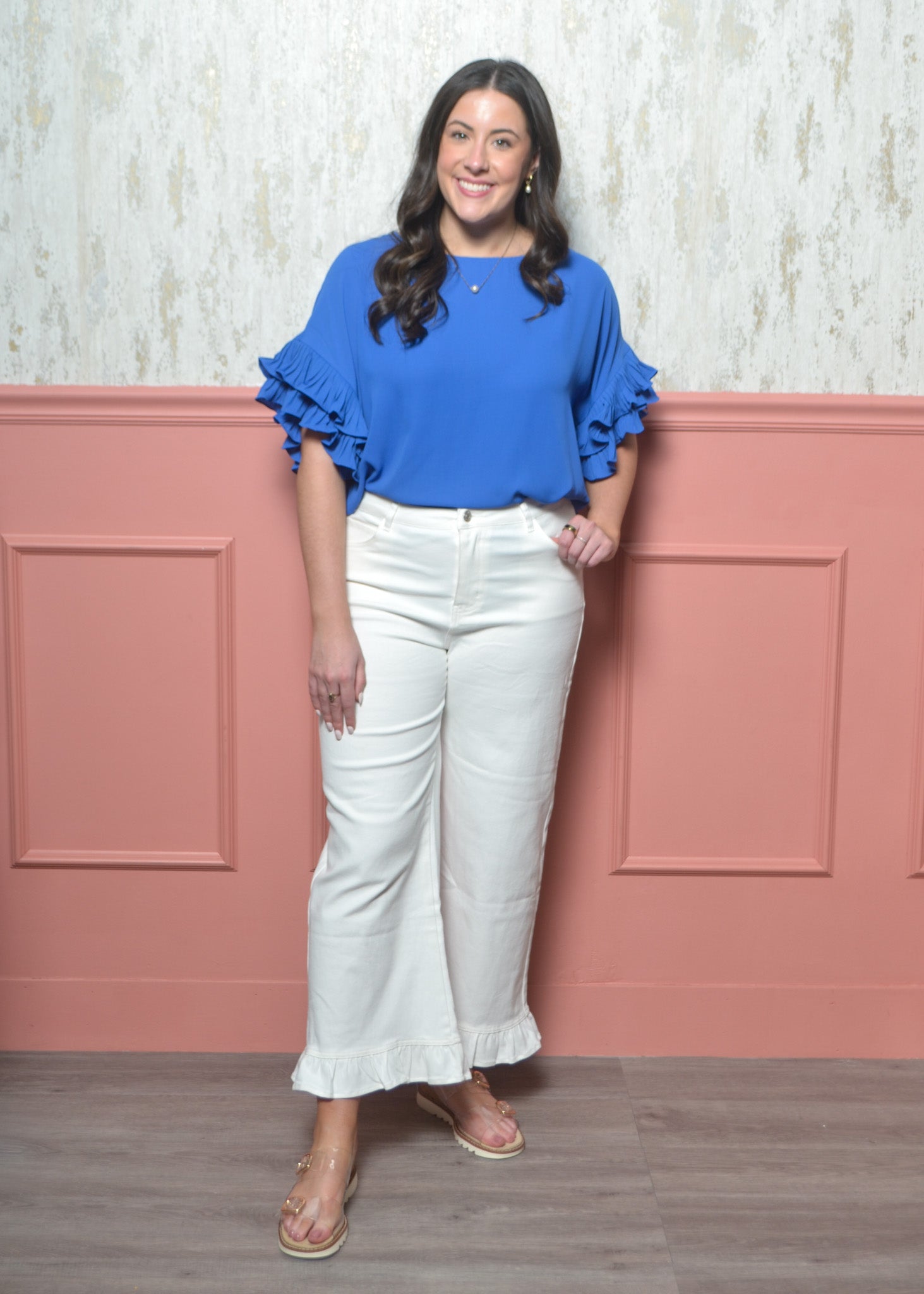 - Soft ruffle hem detail at the ankle for a feminine finish