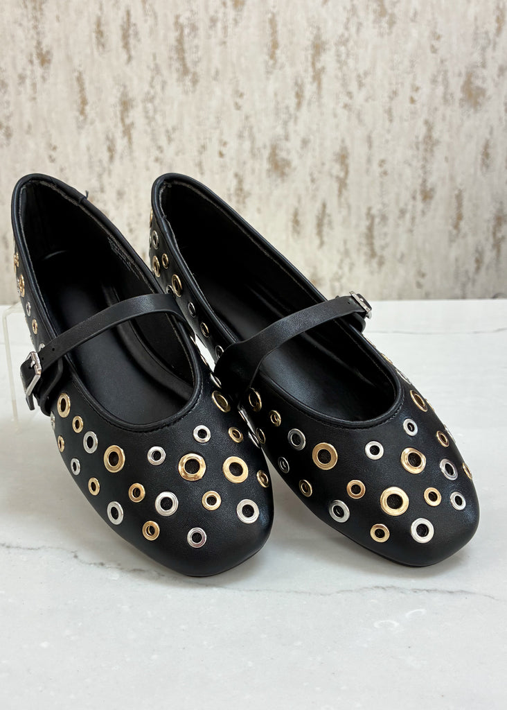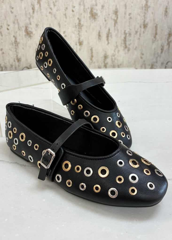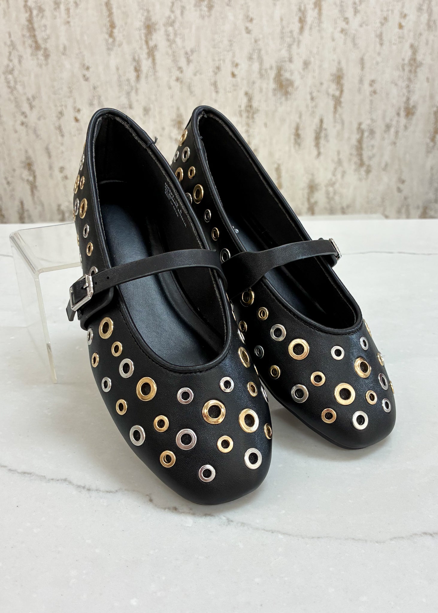 Add a bold twist to your everyday flats with the Rebel Edge Flat. Detailed with metallic grommets and a dainty strap, this edgy Mary Jane style balances comfort with standout personality.
