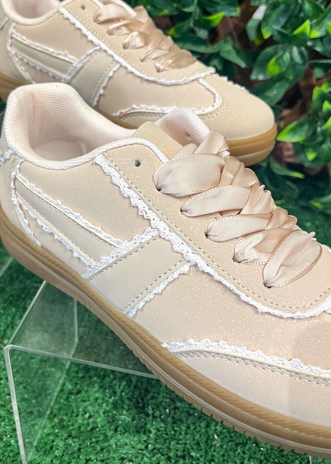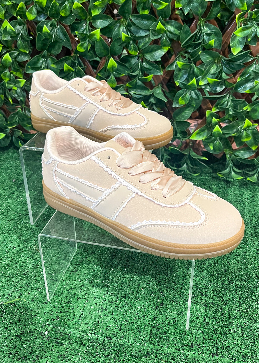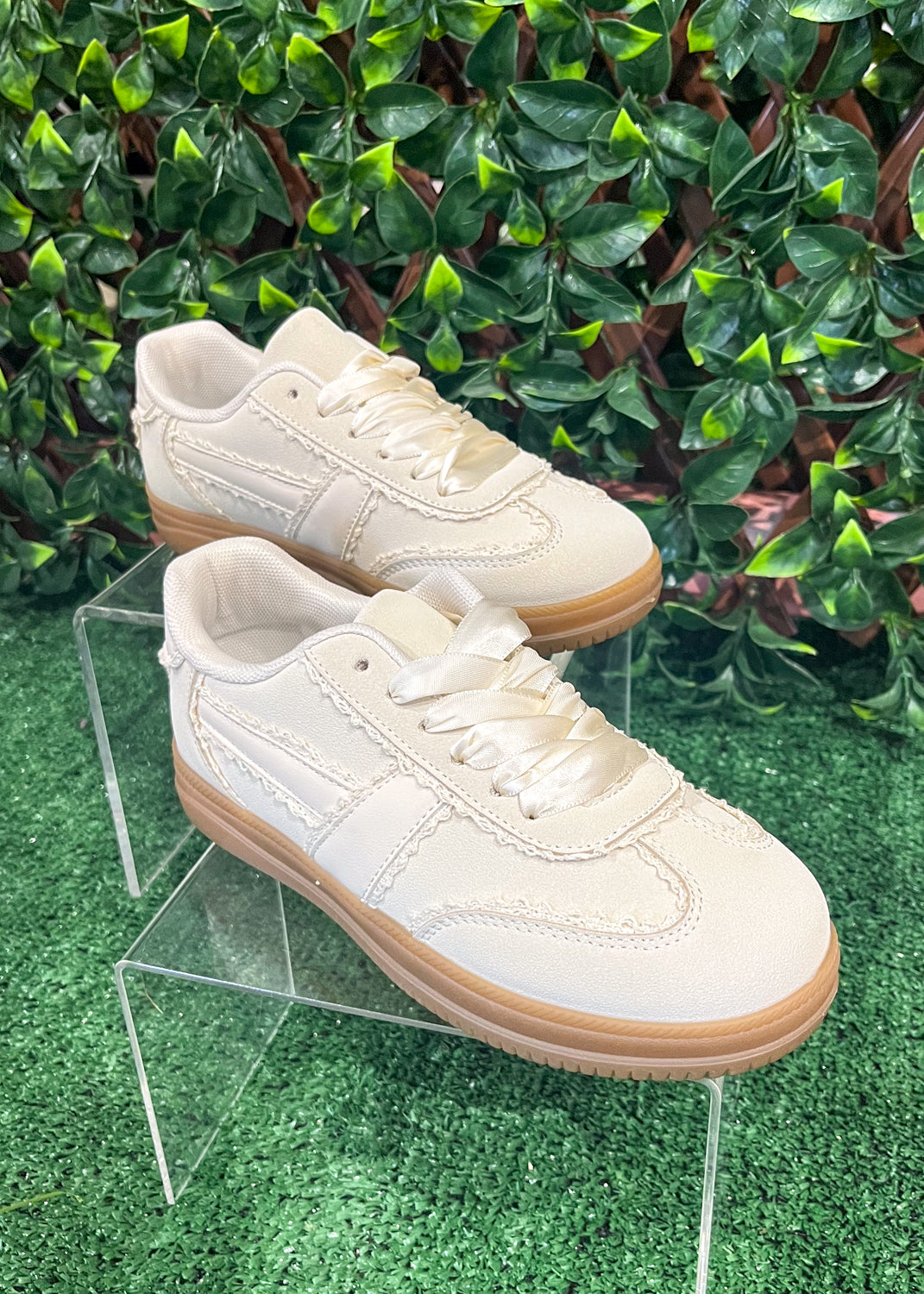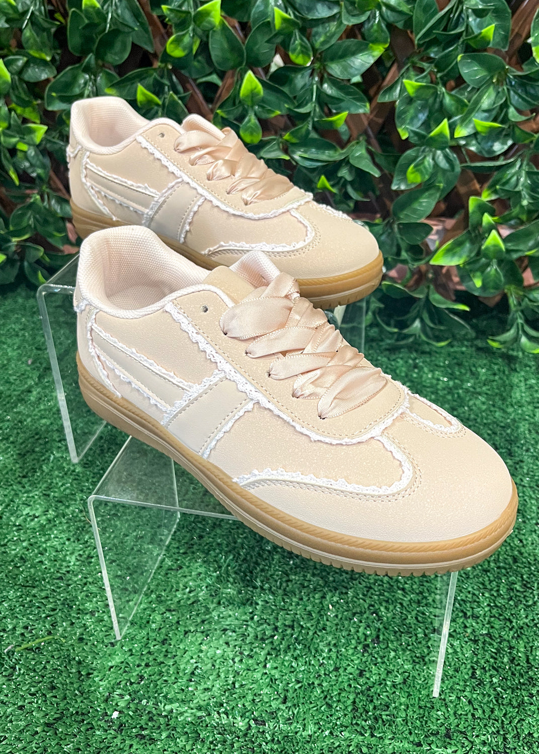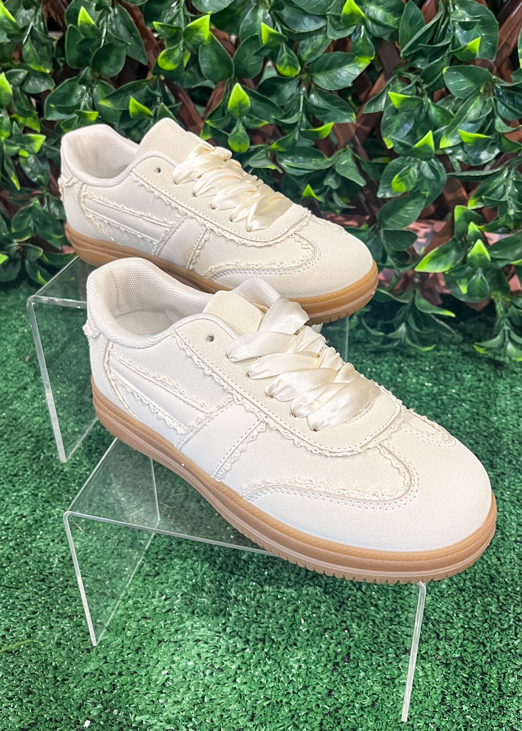 Soft, playful, and easy to wear, the Sweet Street Sneaker is your everyday go-to for comfy, cute styling. Designed with delicate lace-trim detailing and a neutral gum sole, this sneaker pairs effortlessly with denim, dresses, and casual sets for a laid-back but polished look.