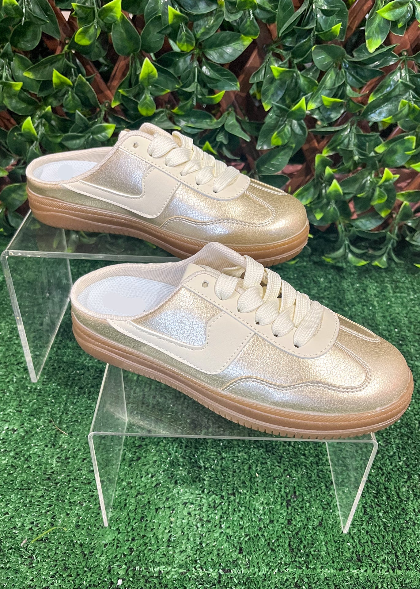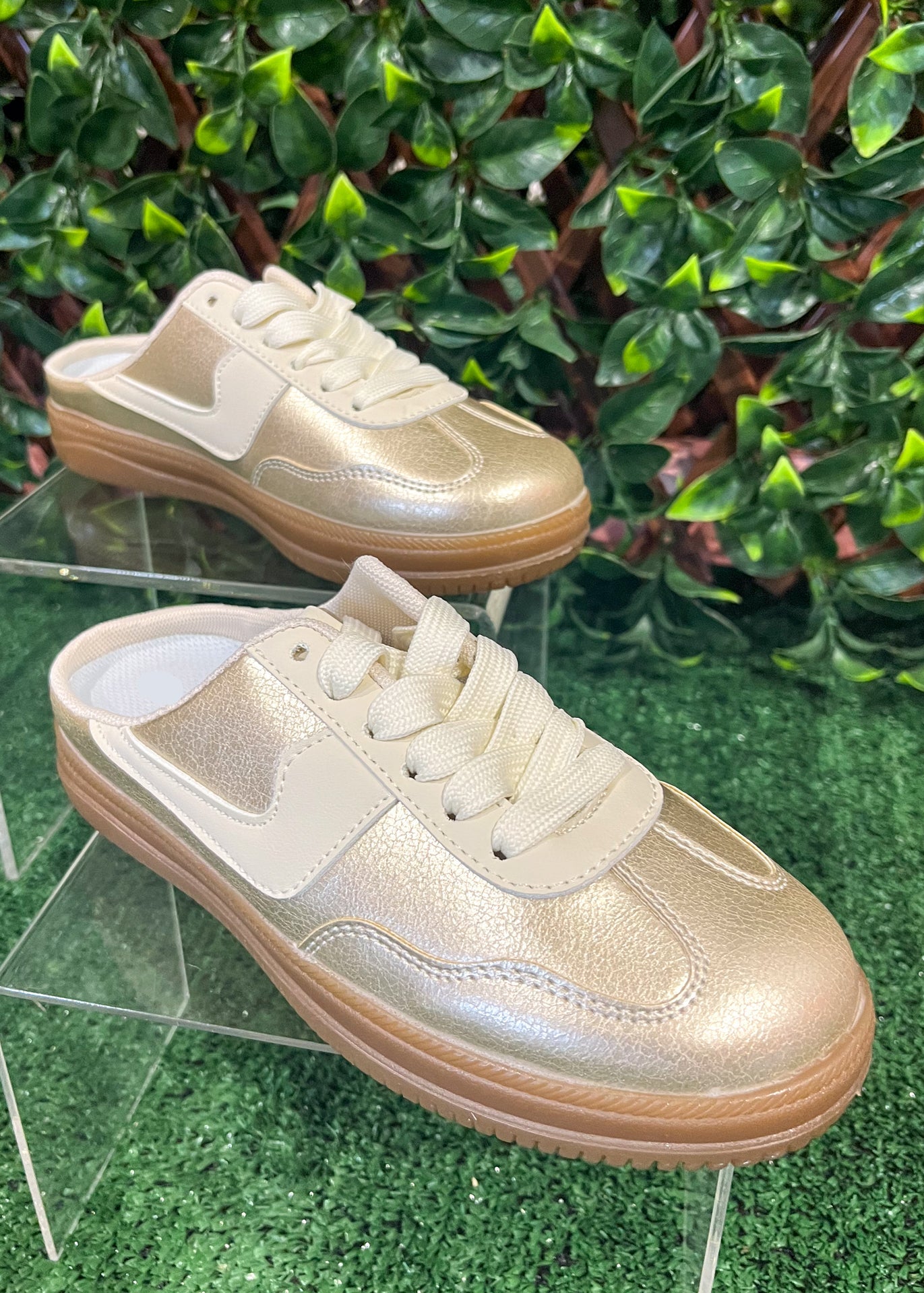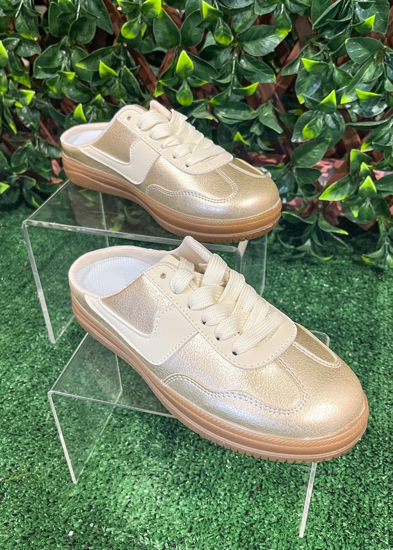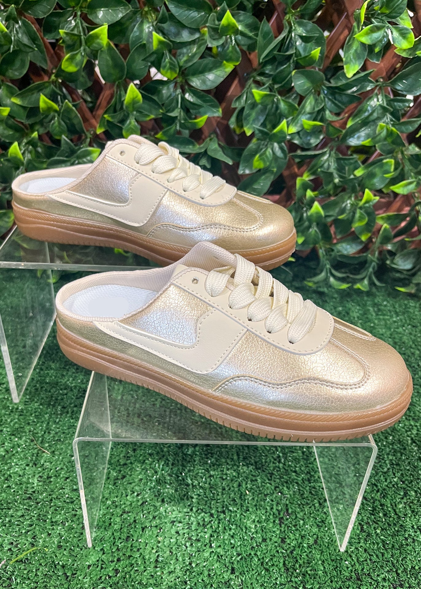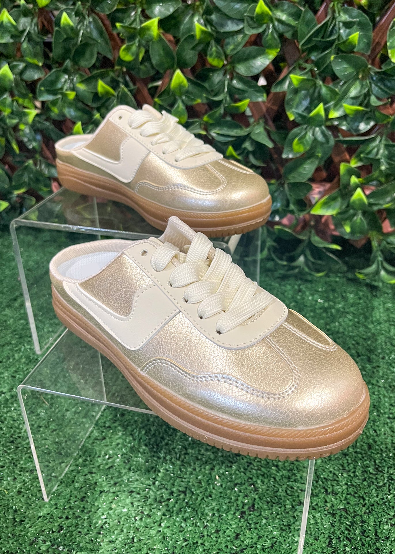 Meet your new everyday go-to with a hint of shine. The Golden Glide Sneaker pairs sporty comfort with metallic details, making it easy to dress up your daily denim, dresses, and casual sets.