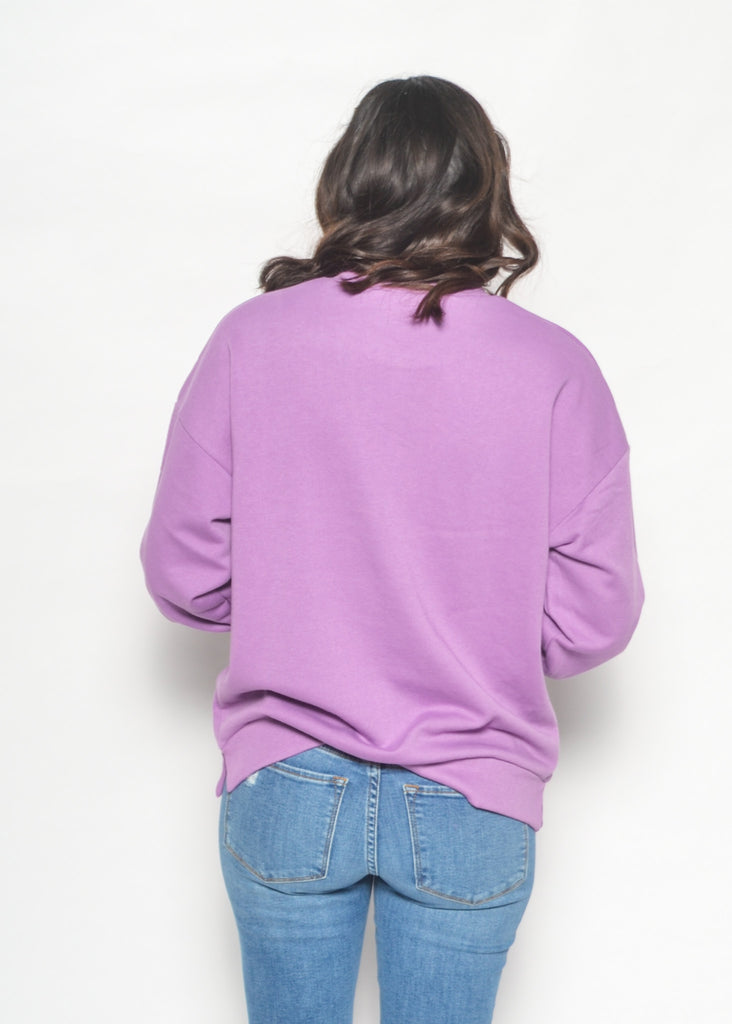 - Lavender crewneck sweatshirt