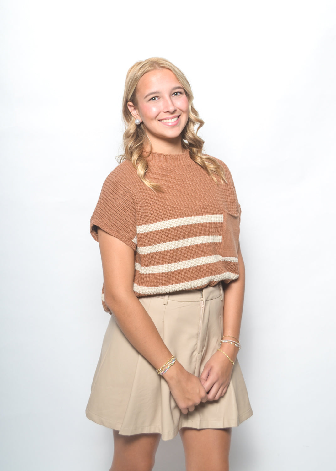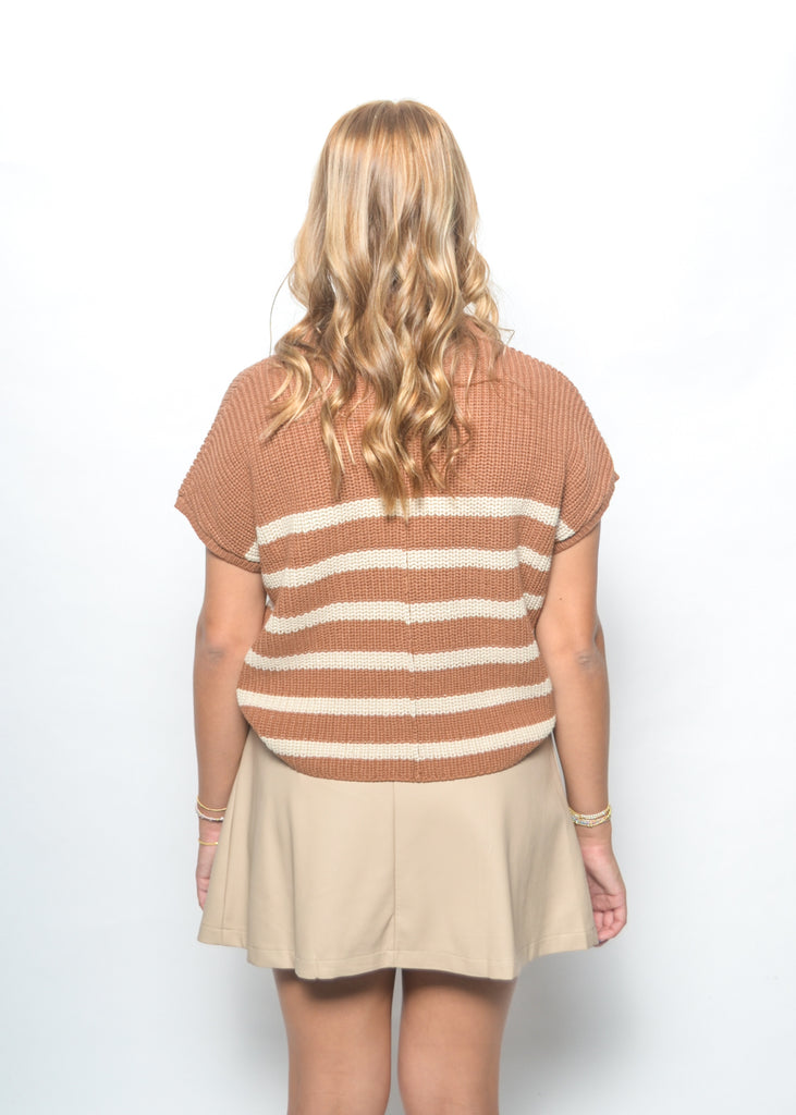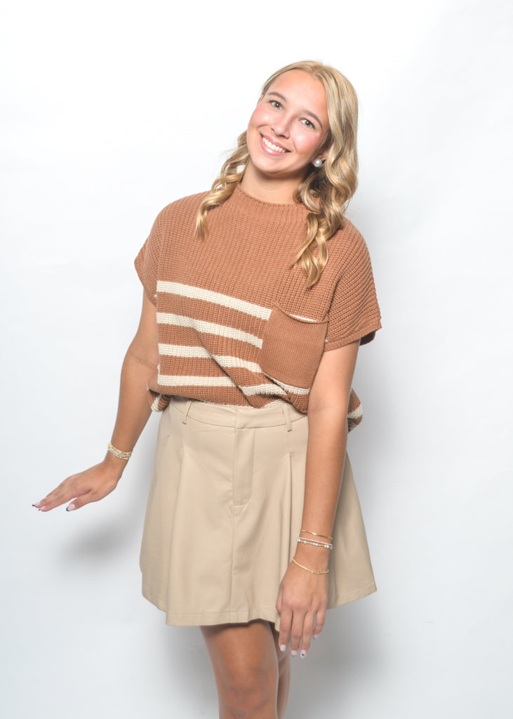 Effortlessly cool and made for cozy days, The Weekend Stripe Sweater is a must-have for your fall wardrobe. This short sleeve knit features a relaxed, boxy fit with a mock neckline and bold horizontal stripes for that perfect mix of comfort and style. Pair it with denim, skirts, or shorts for an easy look you’ll reach for again and again.