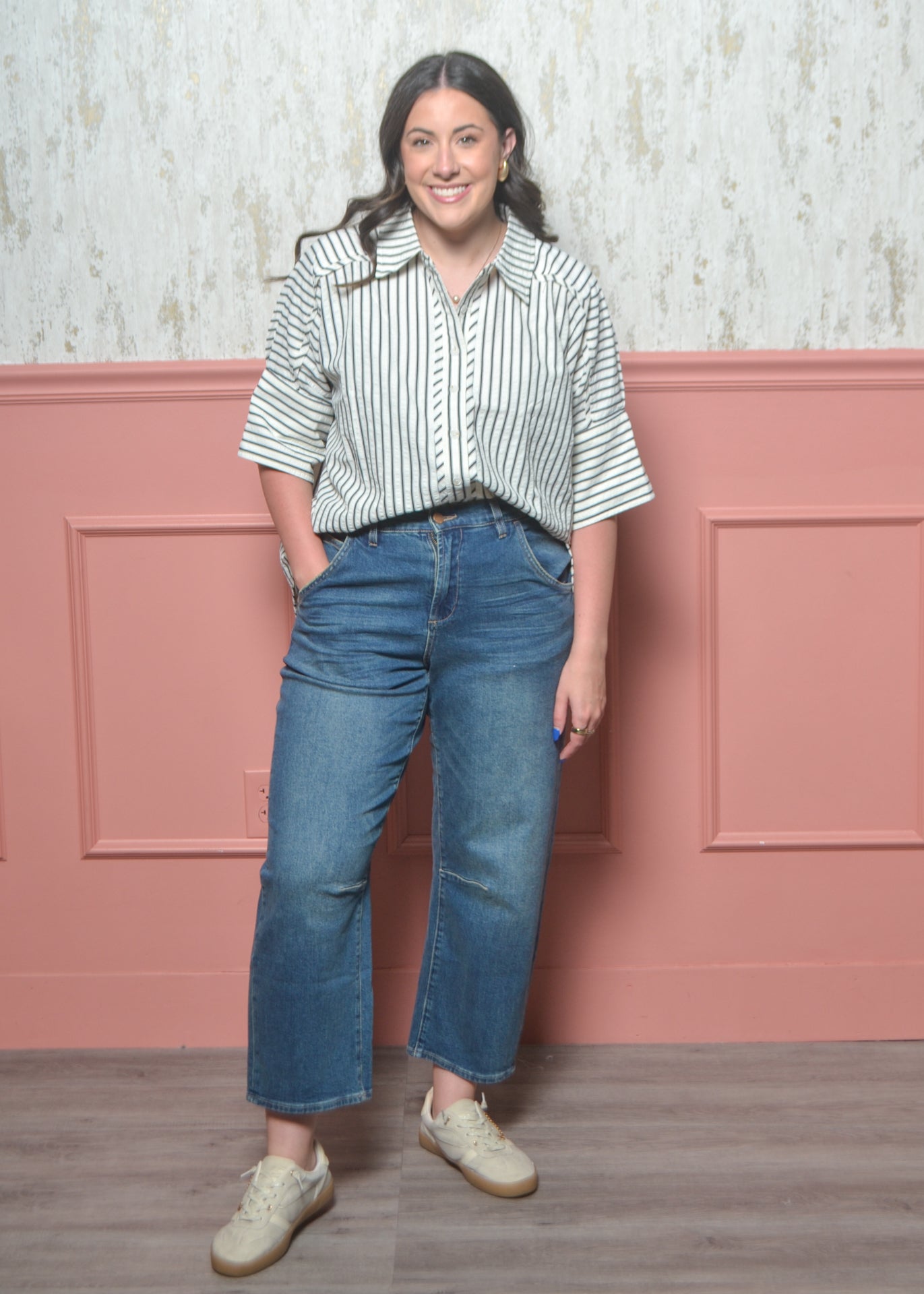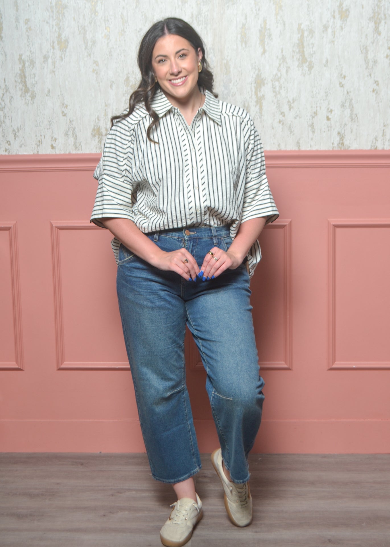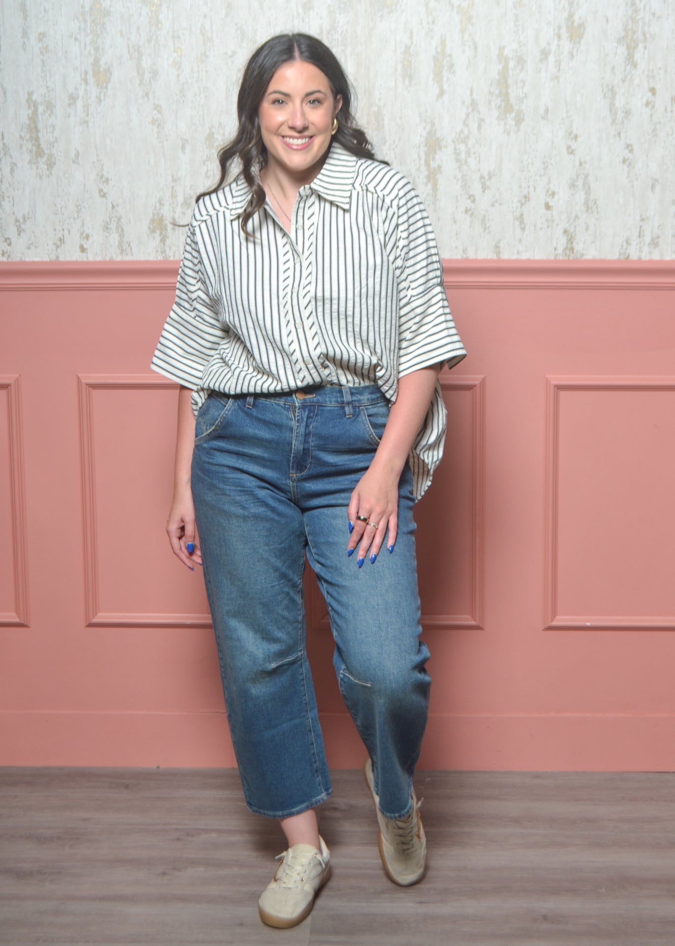 Effortlessly relaxed with a classic touch, the Market Stroll Stripe Top is your go-to for easy, everyday styling. Featuring a timeless stripe pattern with a breezy, oversized fit, it’s the perfect piece to throw on and go.