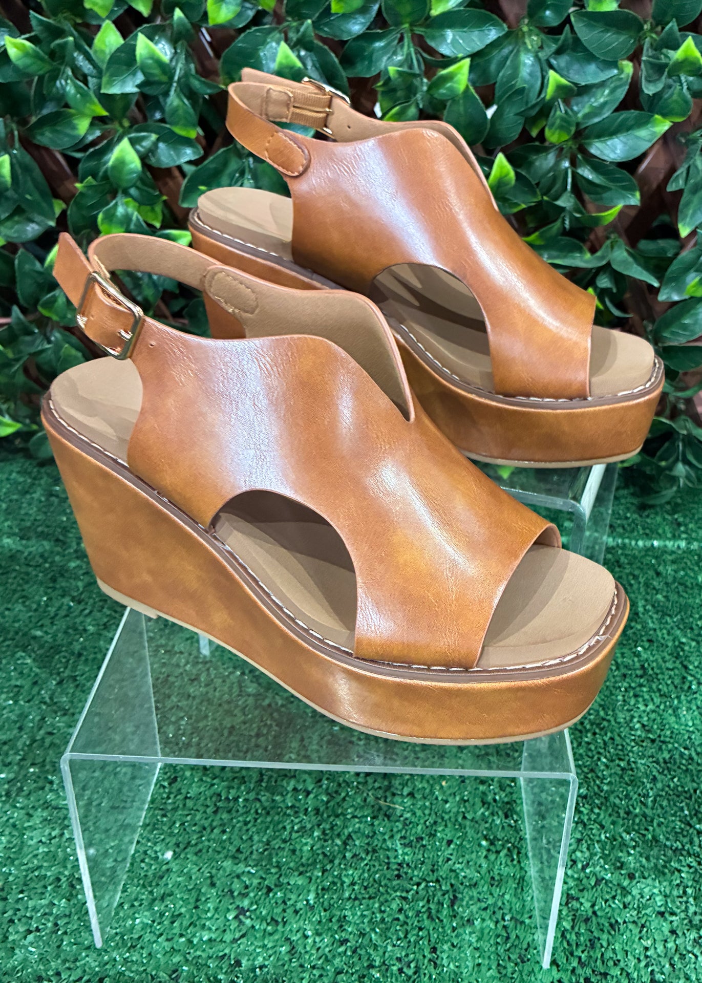 The Harvest Heights Wedge is your go-to for polished everyday wear with a touch of warmth. Featuring a smooth cognac finish, open-toe design, and a supportive wedge heel, this pair effortlessly dresses up denim, dresses, and everything in between.