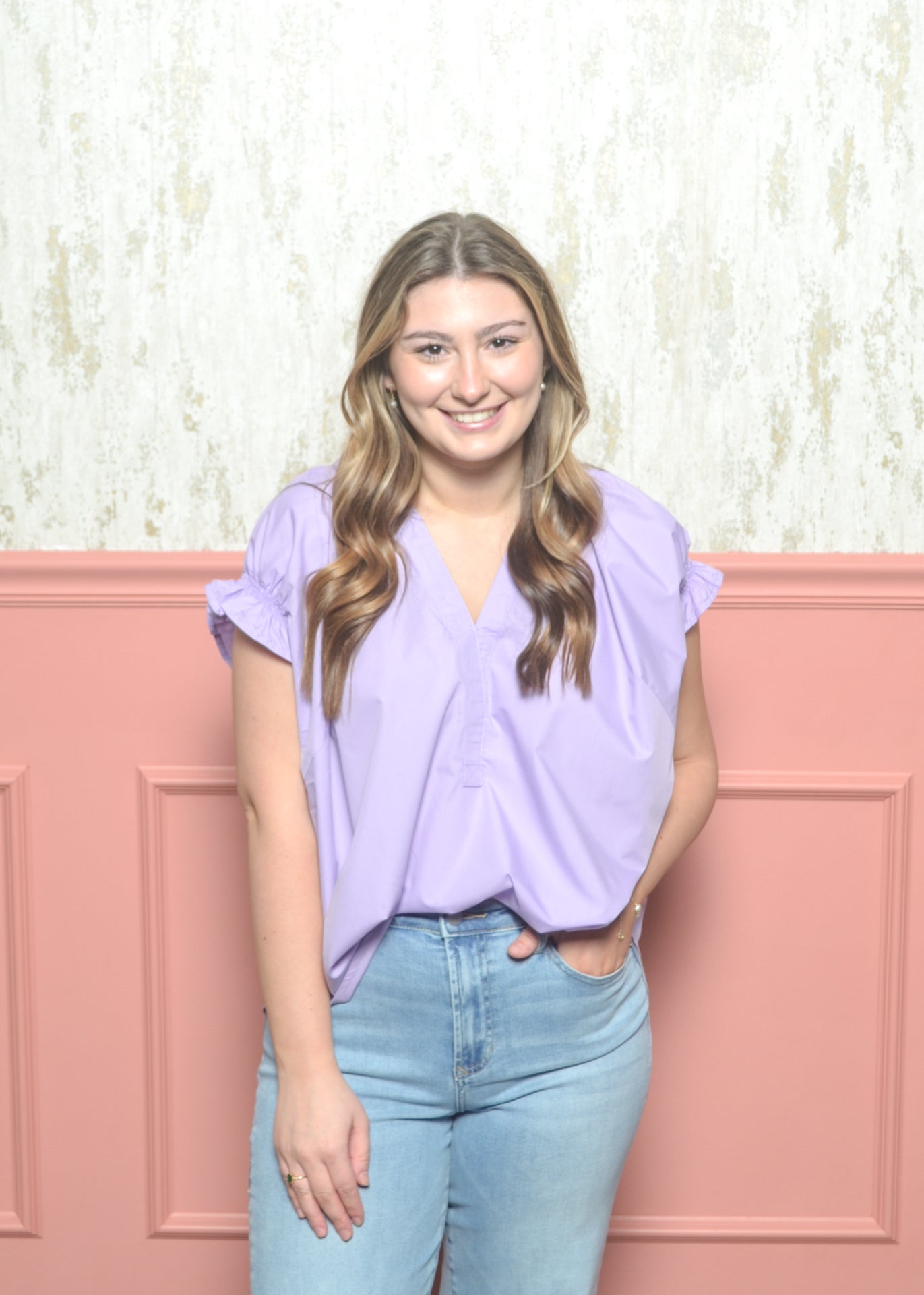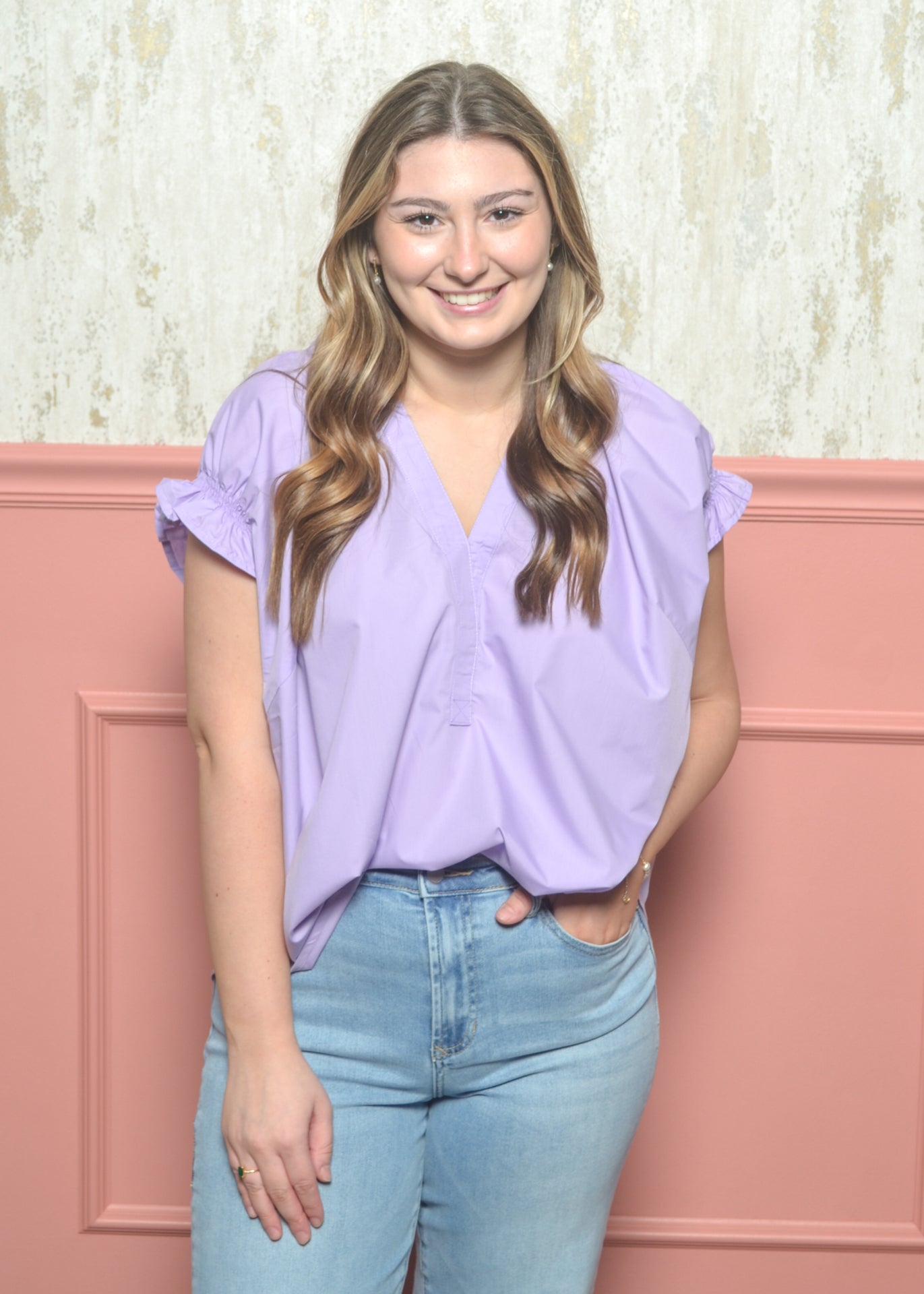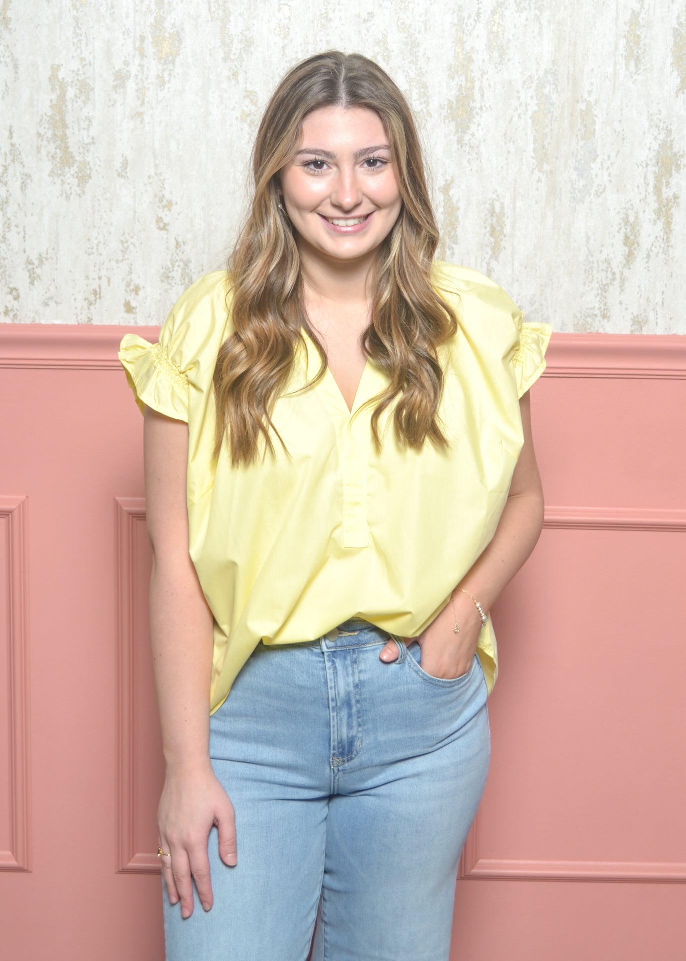 Light, breezy, and easy to wear, the Sunny Ease Top is one of those pieces you’ll reach for again and again. The relaxed fit and soft ruffle sleeve detail make it perfect for everyday wear while still feeling polished.