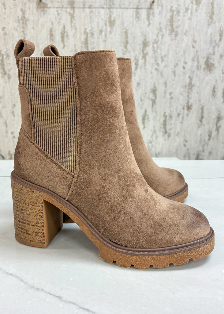 Step into the season with The Autumn Rise Bootie — a fall essential that blends comfort, height, and effortless style. The soft suede finish and stacked block heel make it perfect for pairing with everything from denim to sweater dresses.