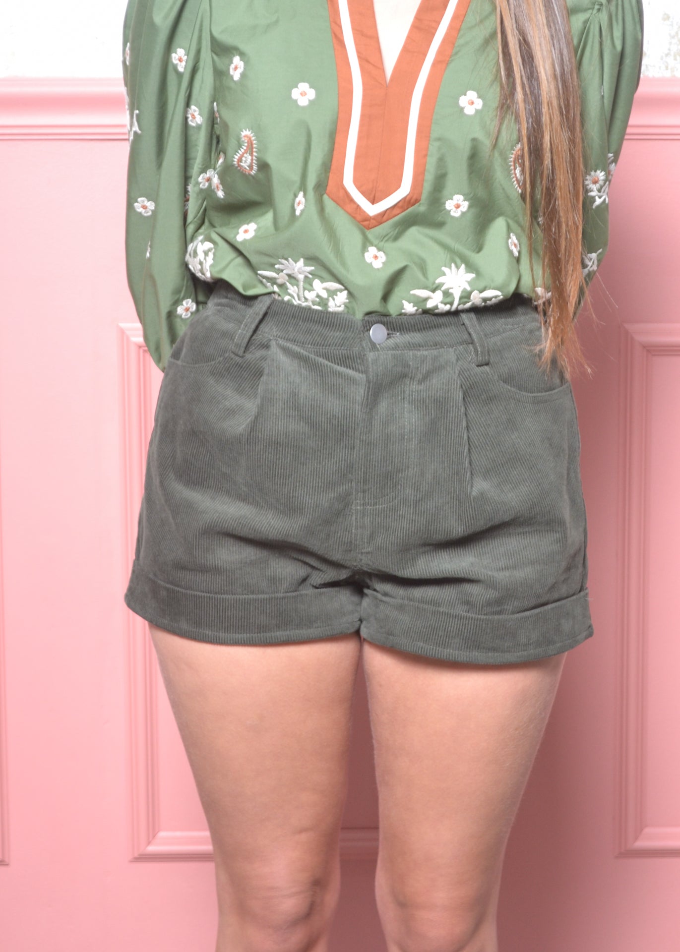 • High-waisted corduroy shorts
