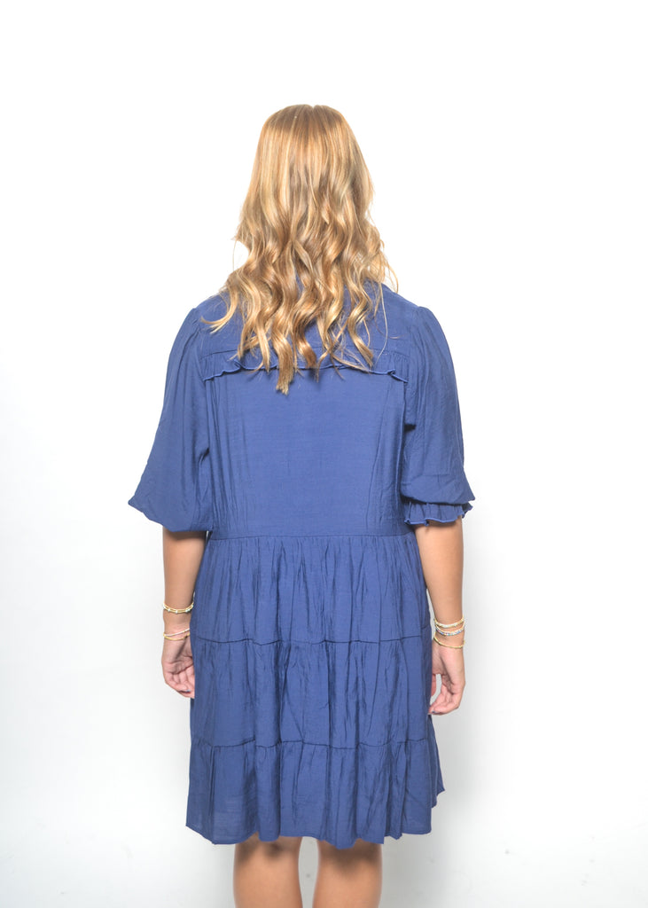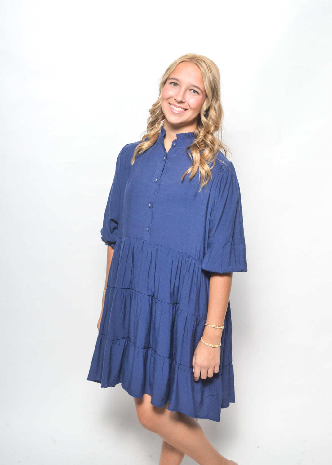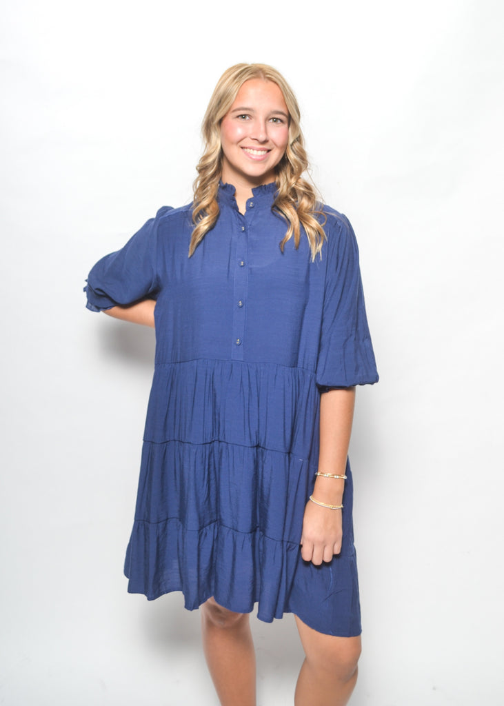 Effortless style meets everyday comfort in The Coastal Tiered Dress. This flowy, lightweight dress features a tiered silhouette with a button-front neckline and subtle ruffle collar for a feminine touch. Its relaxed fit and breezy fabric make it perfect for any occasion — from brunch to game day to fall festivals.
