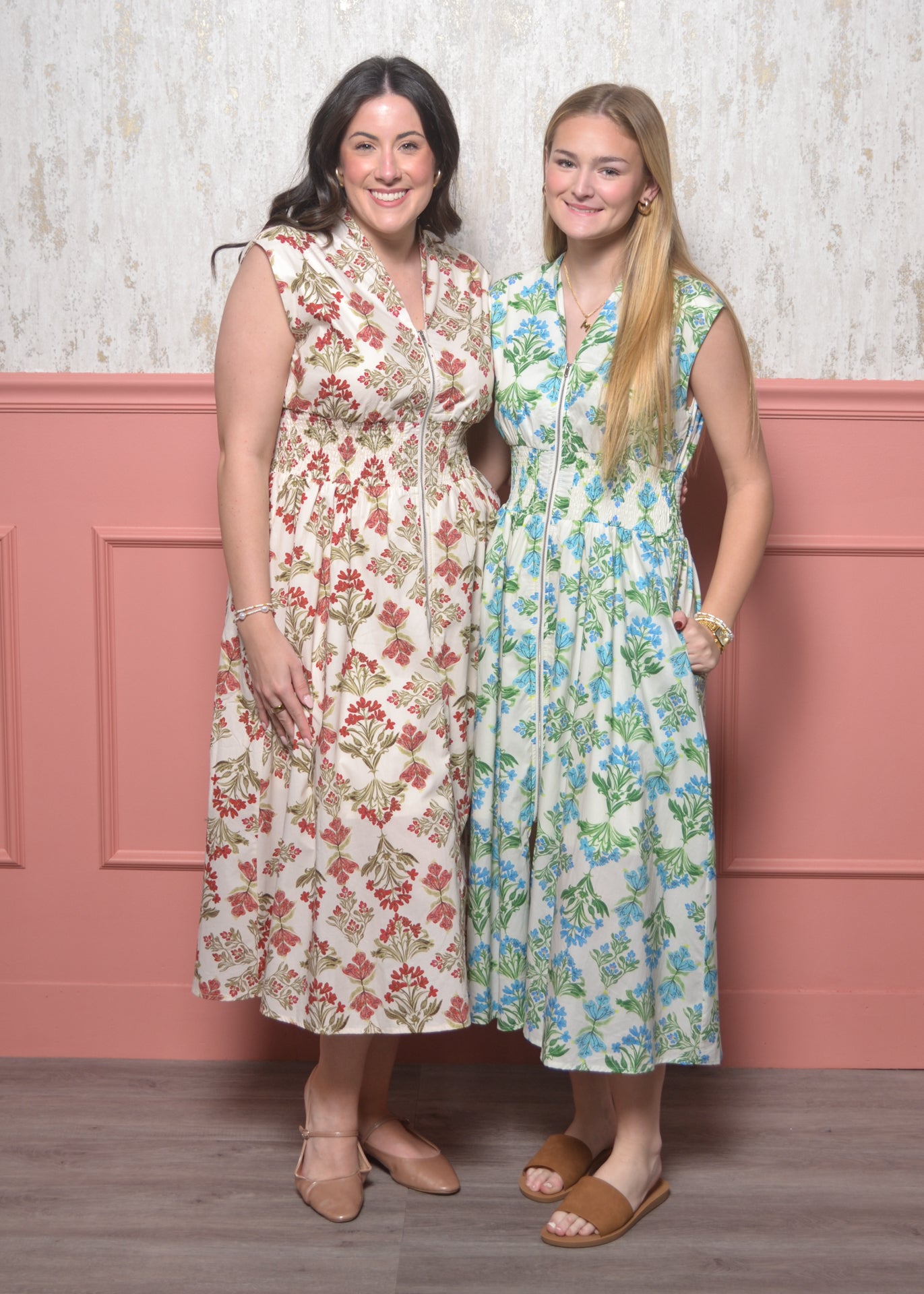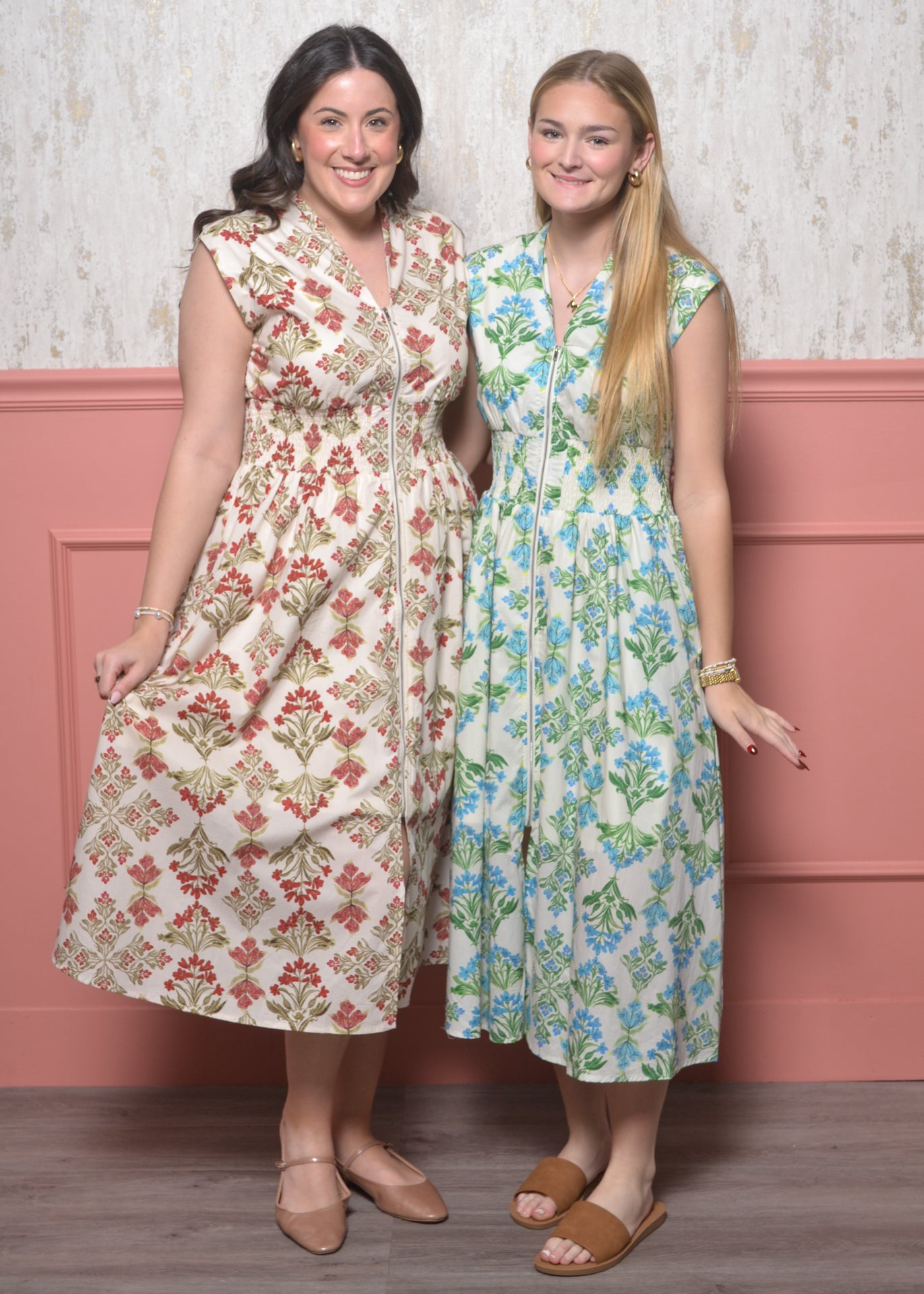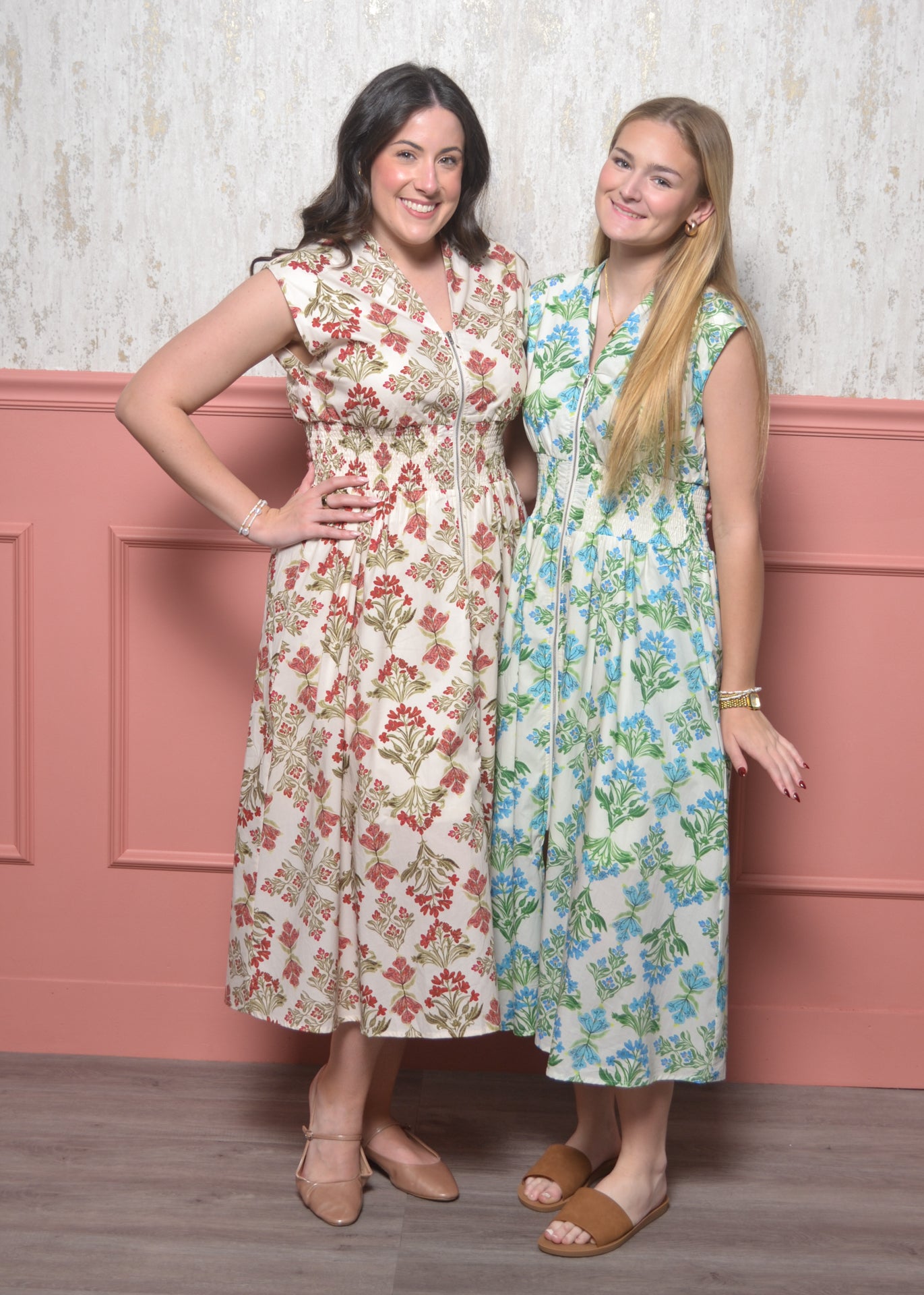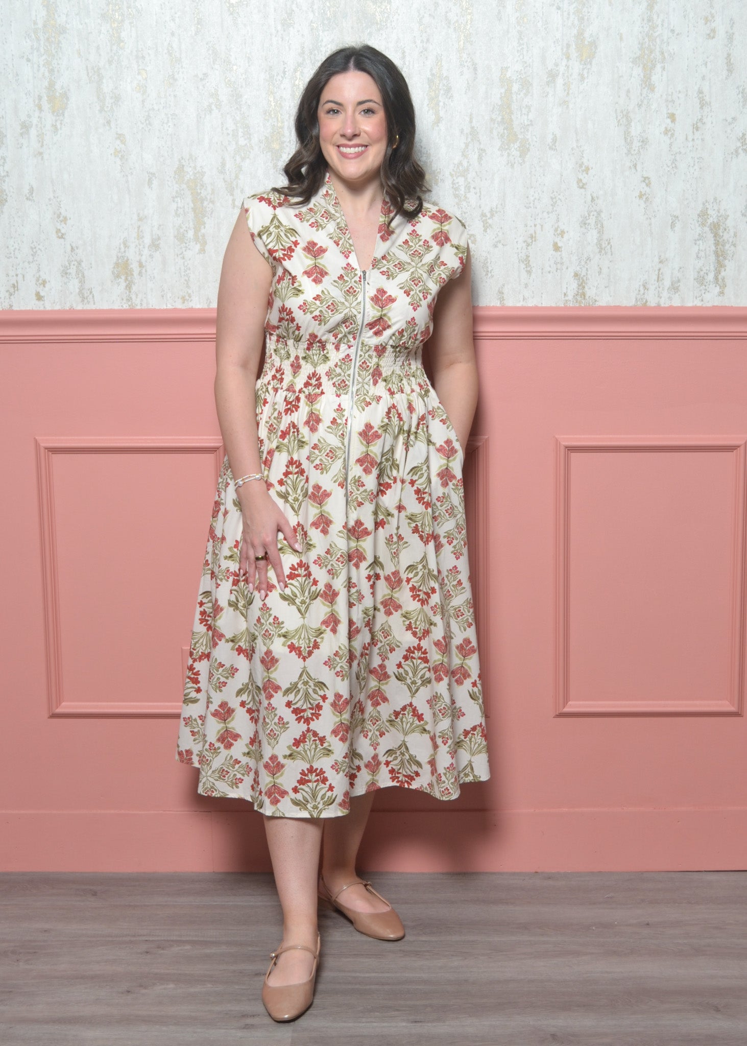 Float through spring days in this effortlessly charming floral maxi. With a flattering smocked waist and functional front zipper, this dress blends comfort, femininity, and easy everyday wear.