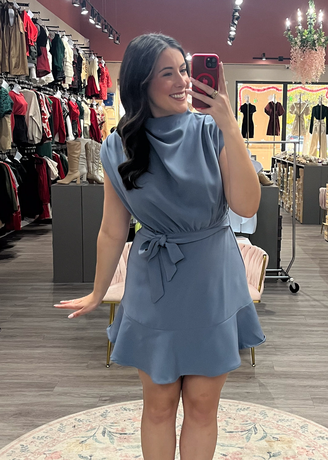 This flattering, easy-to-wear dress is back by popular demand after being a fall favorite. Designed with a soft mock neckline, sleeveless silhouette, and adjustable waist tie, it’s the kind of piece you’ll reach for again and again—now in fresh seasonal colors.