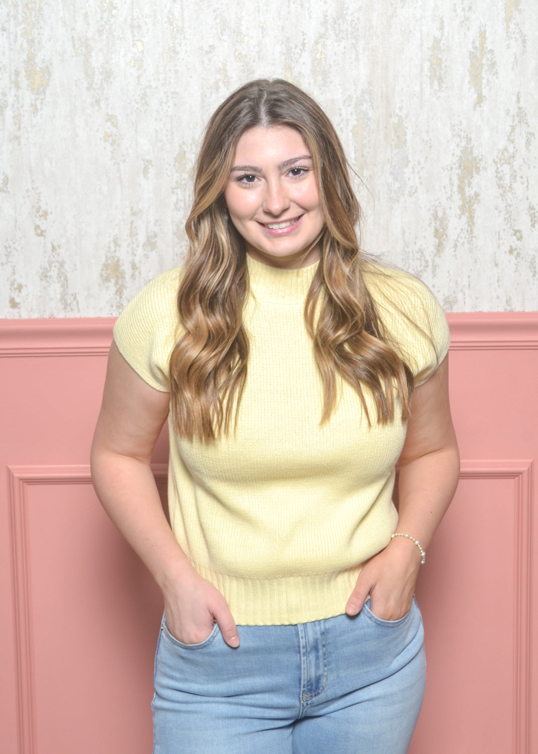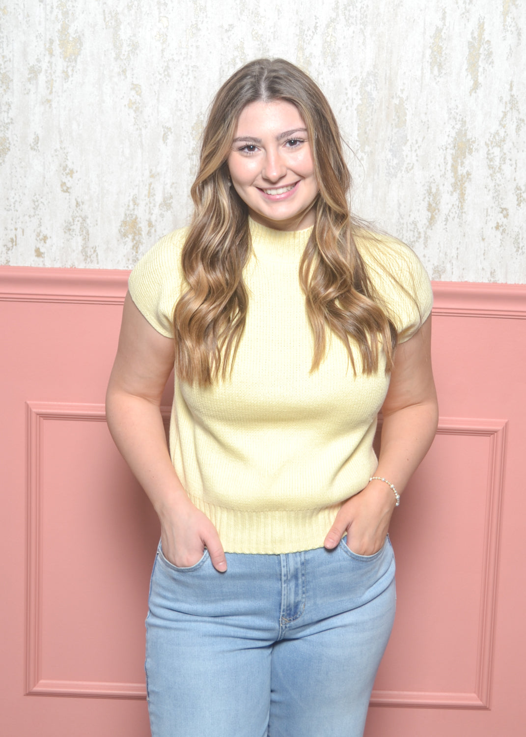 - Sleeveless mock neck sweater